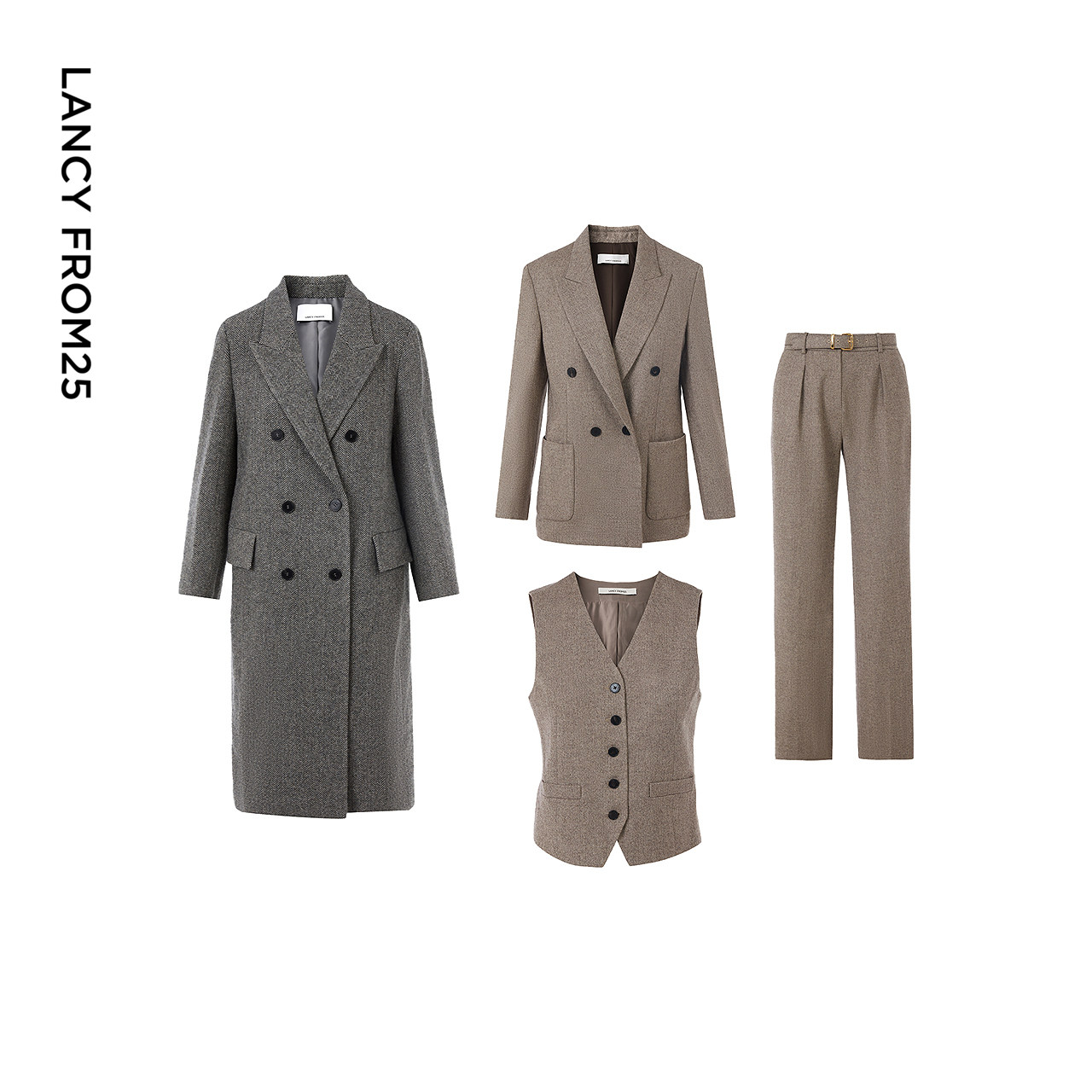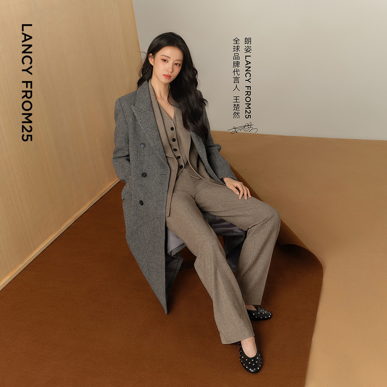 王楚然同款穿搭——朗姿2025年新款羊毛双排扣西装,完美诠释复古通勤新风尚。精选高品质羊毛面料,挺括有型又不失柔软触感,双排扣设计复古优雅,勾勒利落肩线与腰身,展现都市女性的干练与知性。经典枪驳领搭配直筒剪裁,轻松驾驭职场与日常场景,内搭衬衫或针织衫皆宜。王楚然身着此款,气质出众,尽显高级质感与时尚态度。无论是搭配西裤打造全套通勤装,还是混搭半身裙演绎轻复古风,都能凸显独特品味。朗姿以匠心工艺融合现代审美,让这件西装成为2025年衣橱必备单品,演绎从容自信的摩登女性形象。