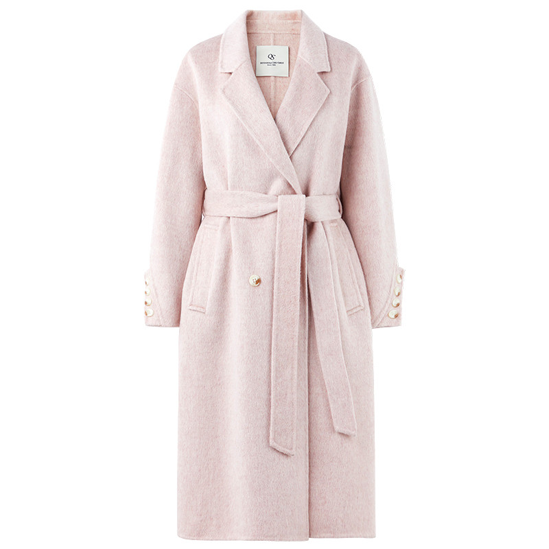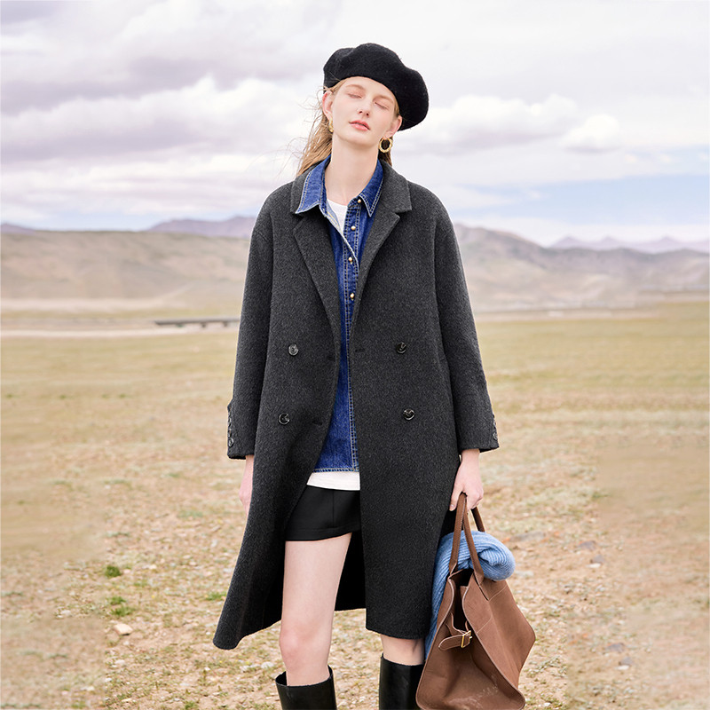 YINER音儿专选女装冬季气质中长款西装领蚕丝羊毛混纺双面呢大衣