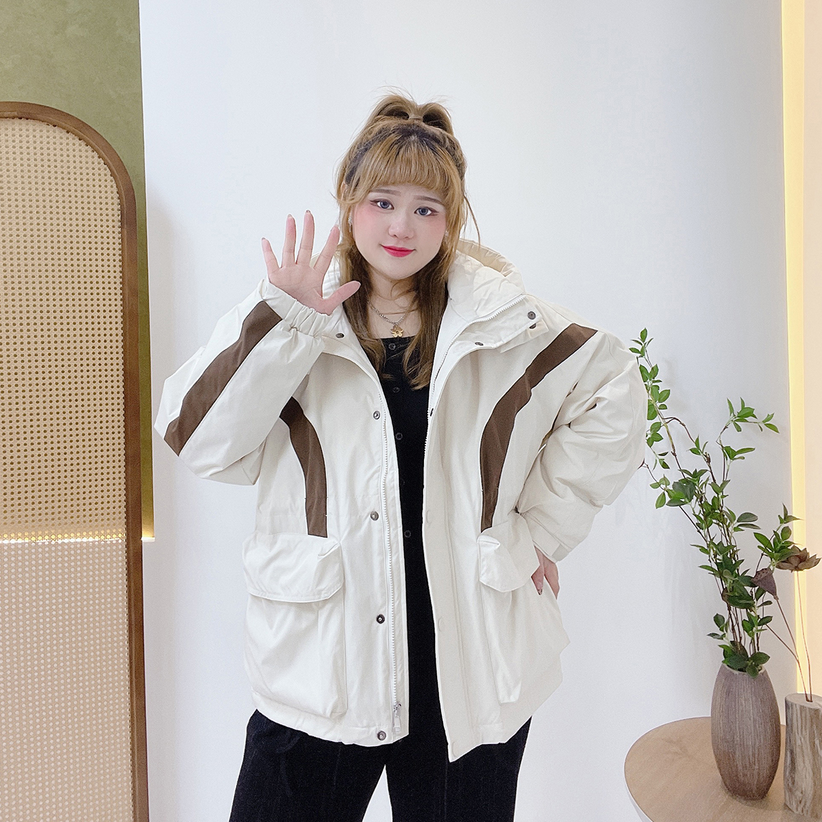 280斤韩版时尚简约风短款羽绒服连帽保暖外套hello胖妞特大码女装