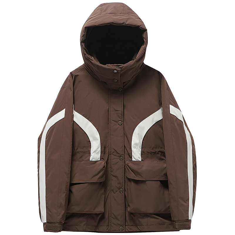 CV大码女装 冬季户外立领连帽羽绒服90白鸭绒工装夹克外套胖MM女