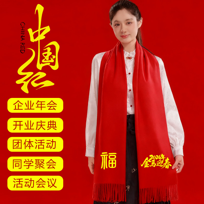 淘年会红围巾定制logo刺绣u可绣字公司企业活动中国红福字围巾红围