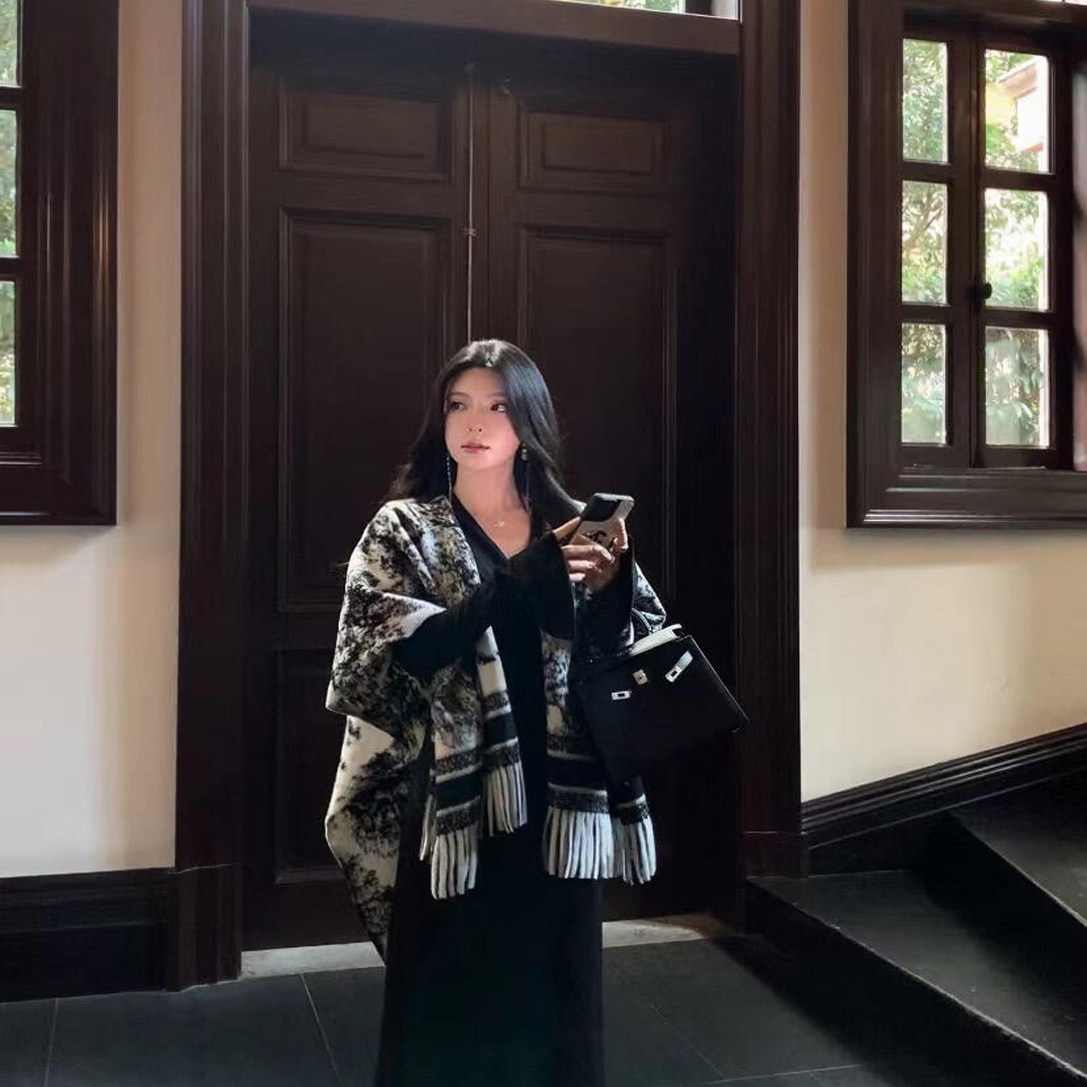 2025年新款水墨画披肩女外搭,融合复古美学与现代高级感,灵感源自云南海边的诗意风光。采用轻盈透气面料,以中国传统水墨技法呈现山水意境,晕染自然、笔触灵动,宛如一幅行走的画卷。宽松斗篷式设计,兼具披风与围巾功能,适合空调房或海边度假,优雅飘逸又不失保暖性。无论是搭配简约长裙还是日常穿搭,都能瞬间提升气质,展现东方女性的温婉与从容。这款大斗篷不仅是时尚单品,更是一份承载文化韵味的艺术表达,为现代女性带来兼具美感与舒适的穿着体验。