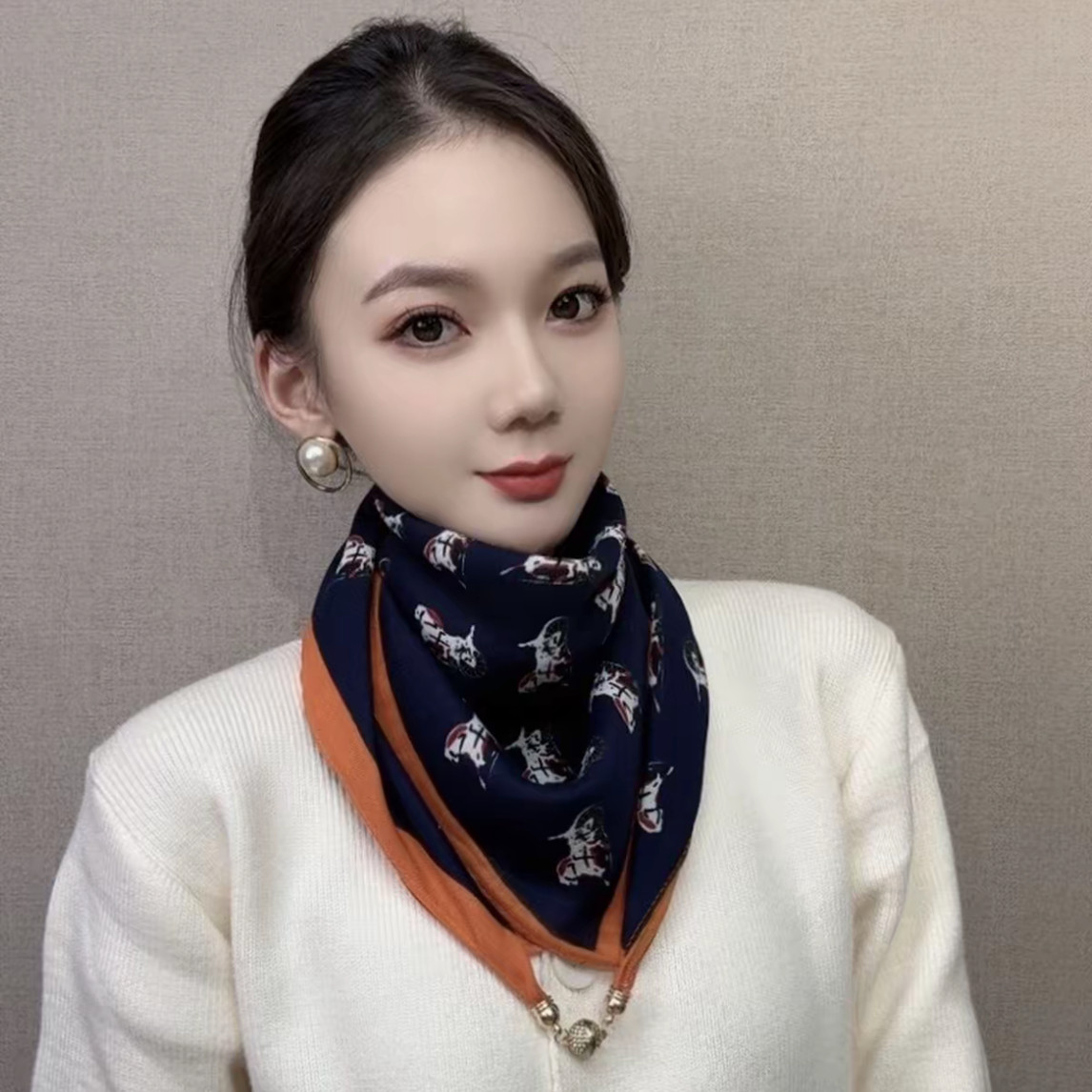 天猫磁吸扣棉麻小方巾丝巾女春秋百搭护颈领巾三角围巾新款保暖围脖冬