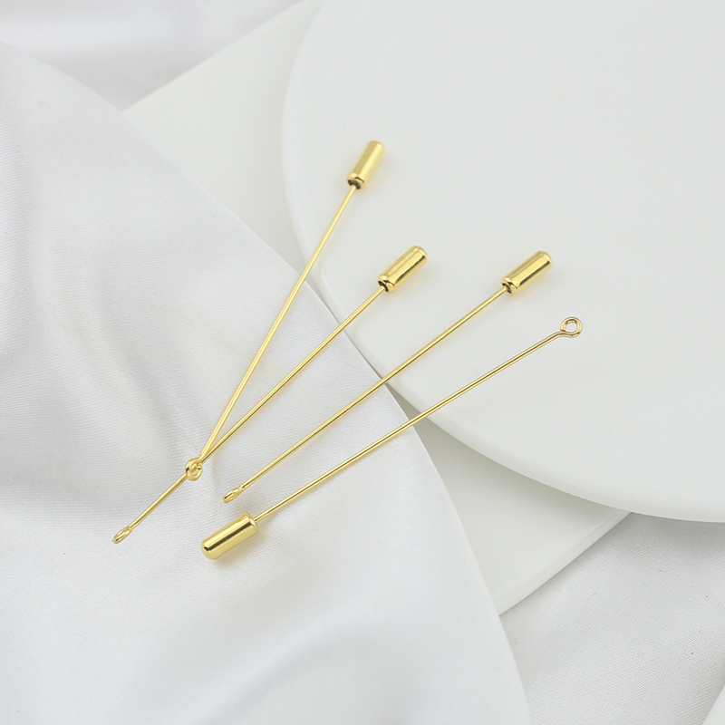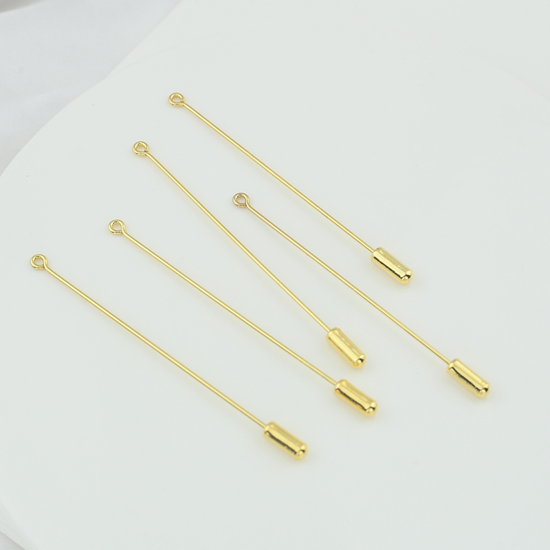淘宝铜镀18k包金保色9字胸针长别针一字硅胶塞胸针diy手工配件材料