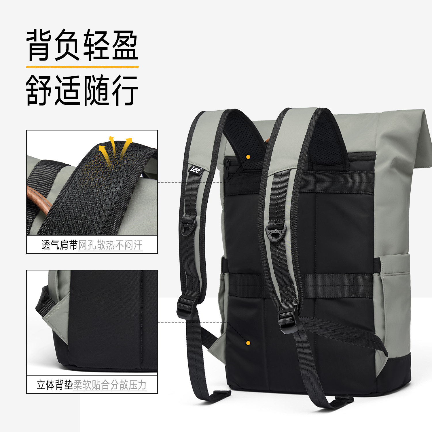 Lee电脑双肩包是一款专为都市通勤与户外出行设计的大容量休闲背包。采用轻量化耐磨面料,兼具防水与抗撕裂性能,适应多种天气环境。独特的卷盖式设计提升密封性,有效防尘防水,同时扩展储物空间。内部设有加厚电脑隔层,可容纳15.6英寸笔记本,搭配多功能收纳袋,轻松整理文具、充电宝等随身物品。加宽透气肩带与背部缓冲设计,长时间背负依然舒适。无论是日常通勤、短途旅行还是轻度登山,这款背包都能满足你对实用性与舒适度的双重需求,是都市男性的理想出行伴侣。