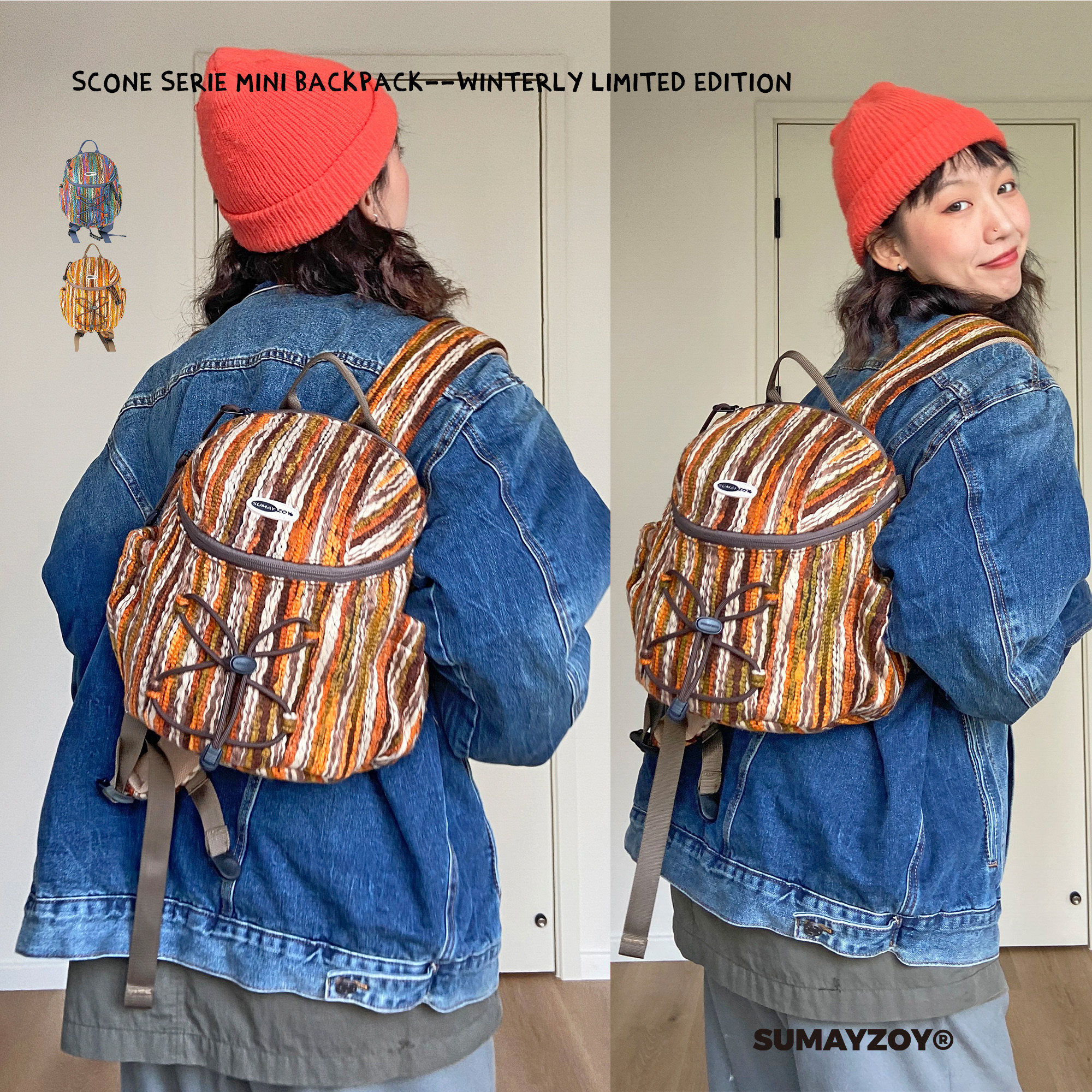 淘宝SUMAYZOY迷你双肩包毛绒秋冬背包费尔岛毛线小书包户外登山旅行包