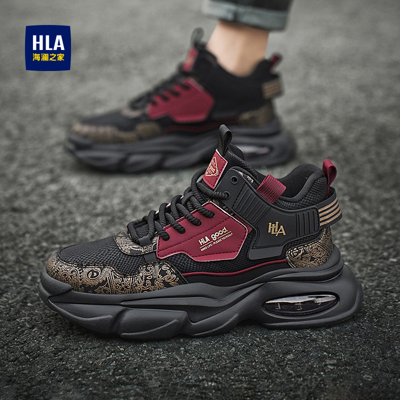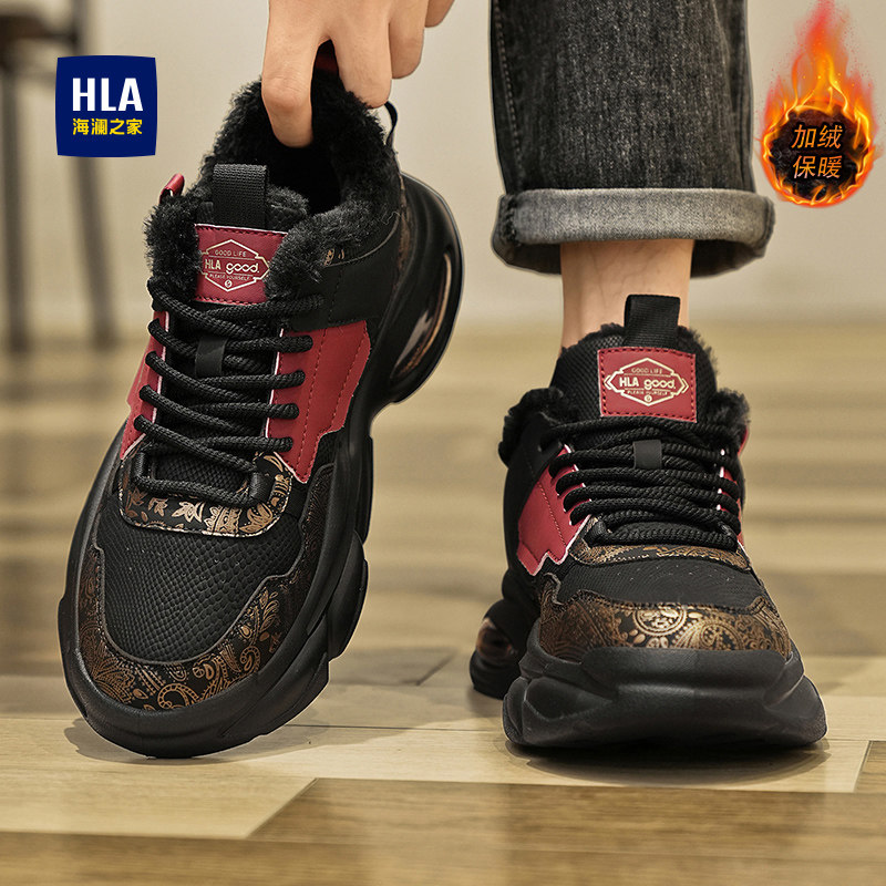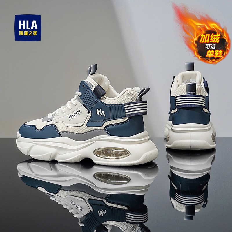 天猫海澜之家气垫男鞋秋冬季加绒高帮篮球运动棉鞋男青少年黑色老爹鞋