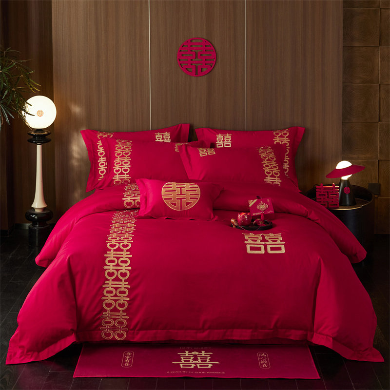 淘宝纯棉全棉刺绣婚庆四件套时尚结婚陪嫁床单被套六件套喜庆床上用品