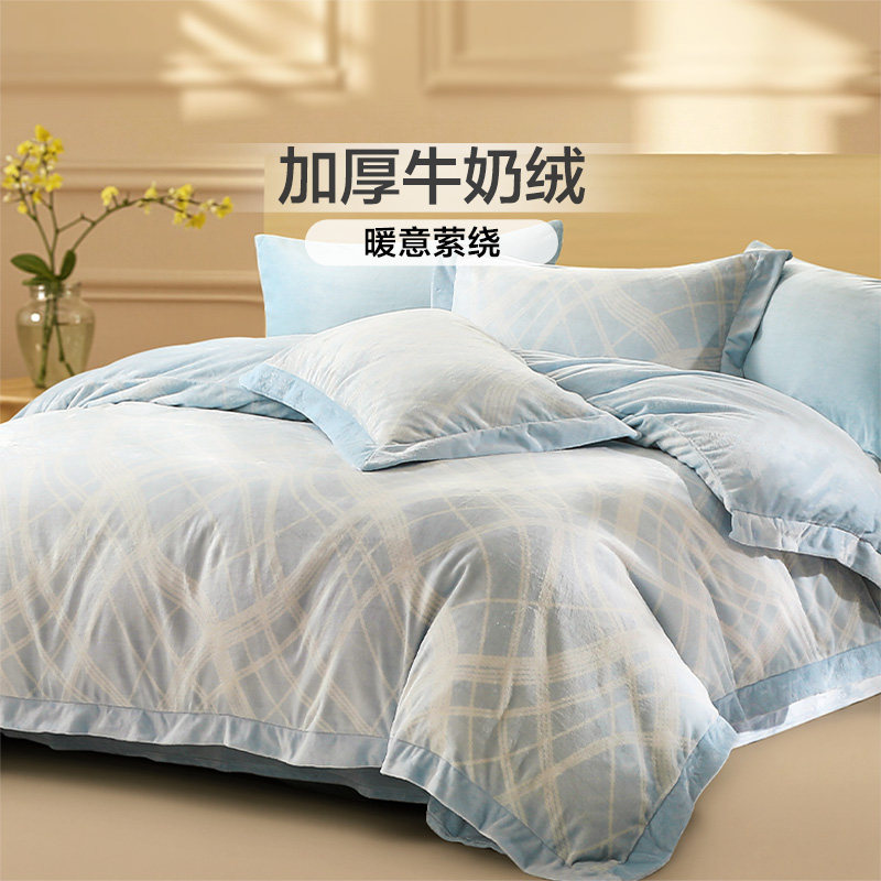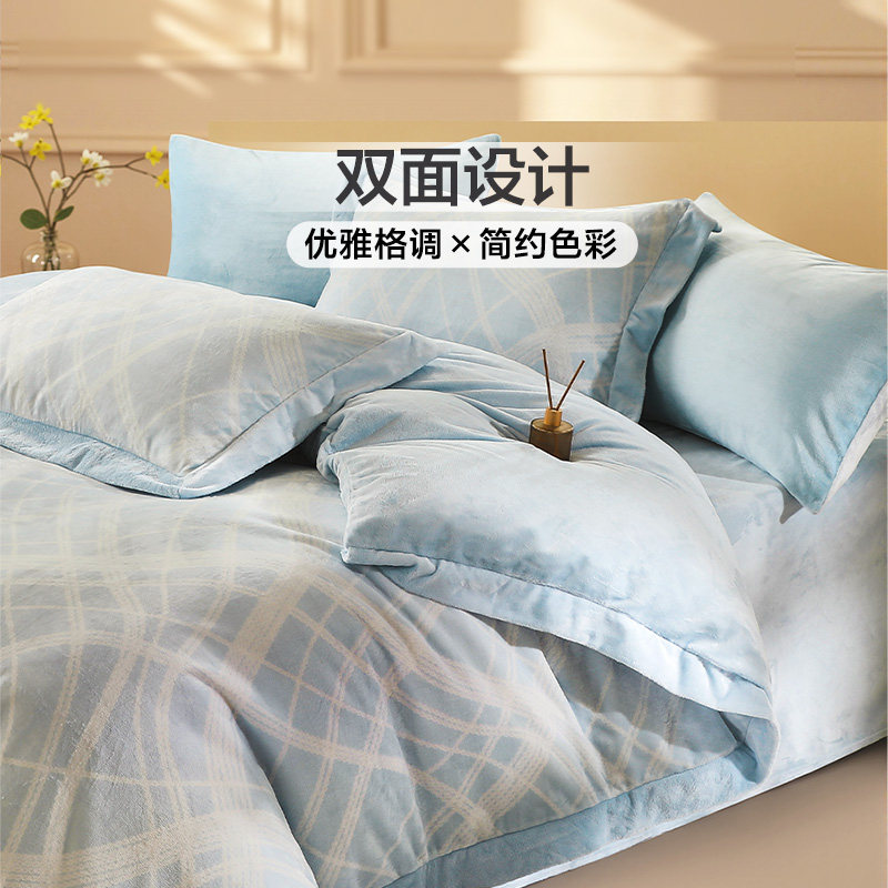 天猫富安娜家纺牛奶绒四件套法兰绒被套床单珊瑚绒床上用品秋冬三件套