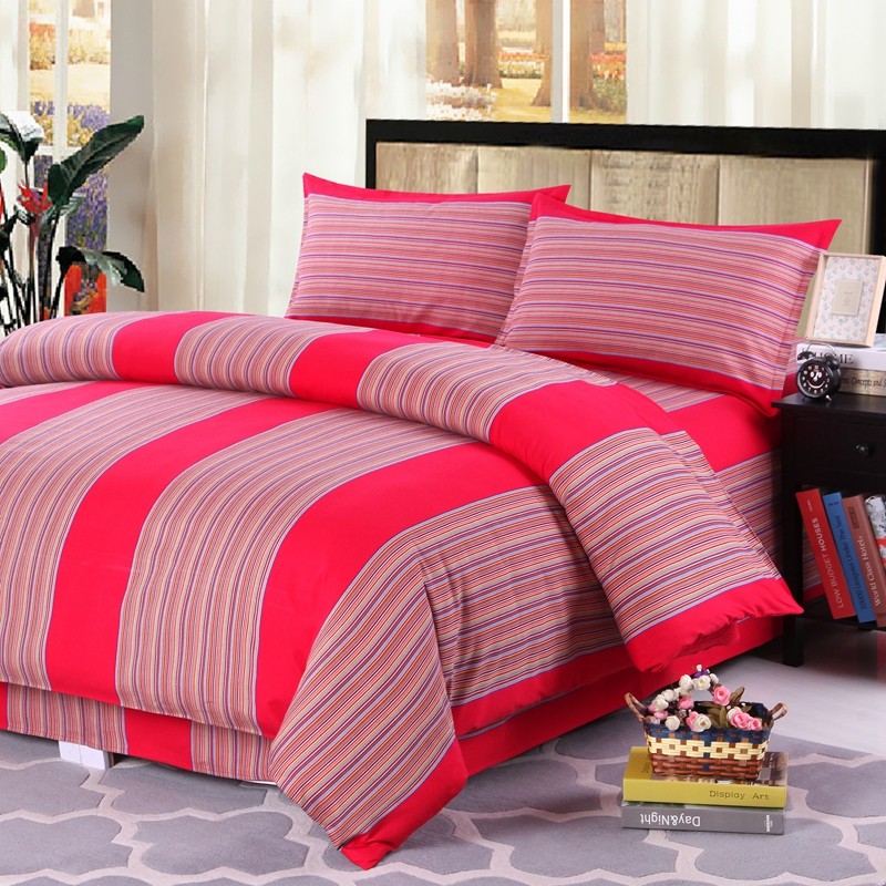淘法式100支长绒棉四件套婚庆纯棉刺绣被套红色喜庆全棉床单1.8床品