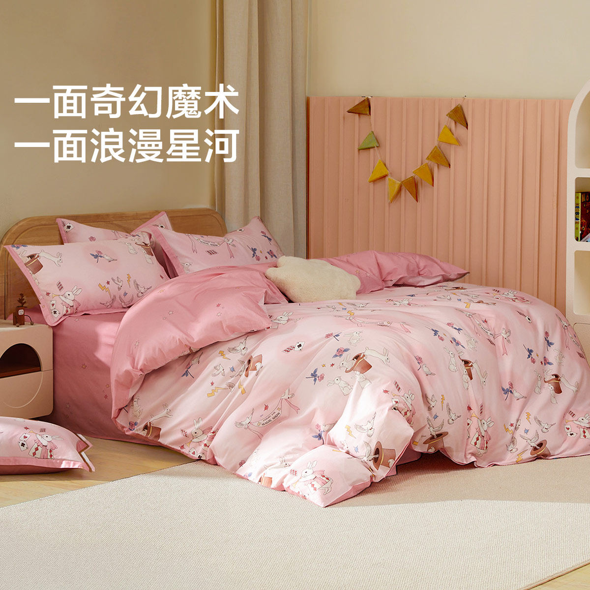 天猫水星儿童全棉印花被套A类抗菌宿舍被罩单人隔脏婴幼儿女魔术演出