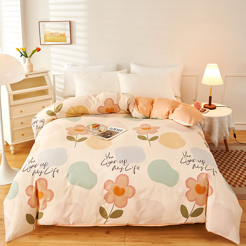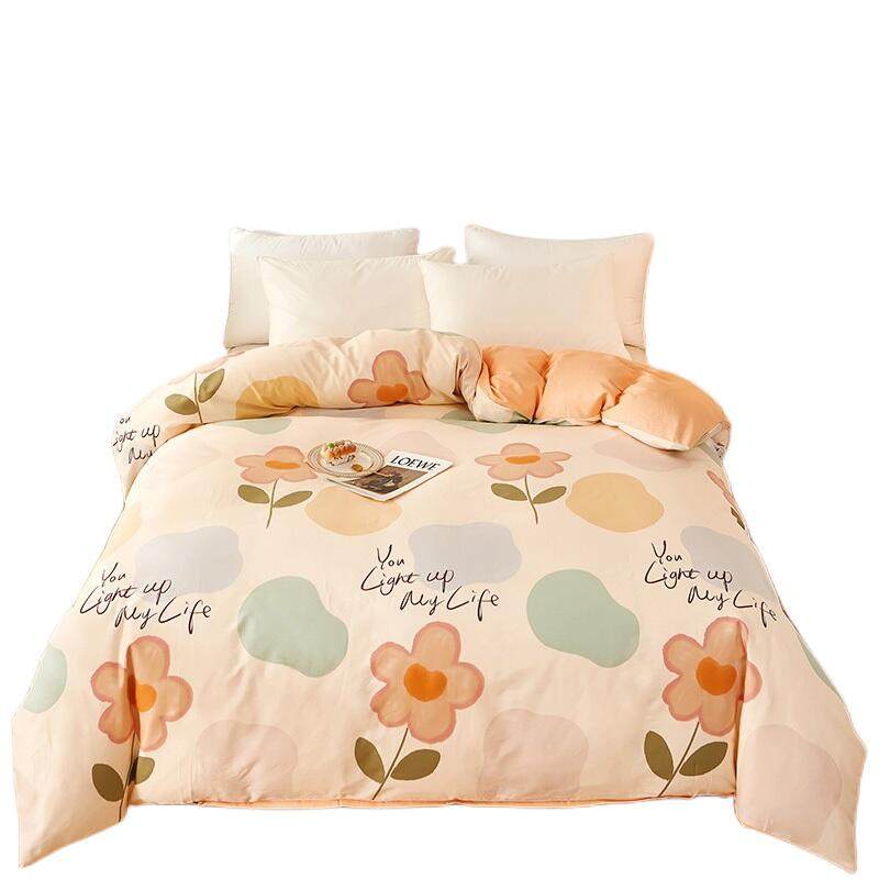 a类全棉四件套双层纱纯棉被套被罩床单床笠大学新生宿舍三件套件4