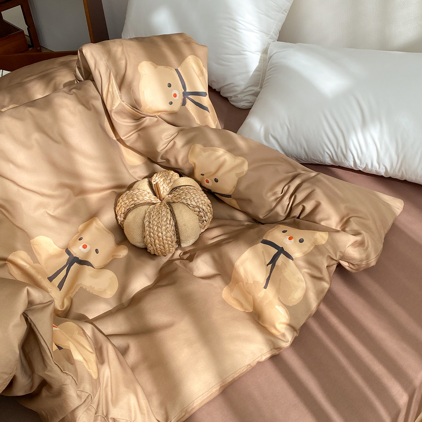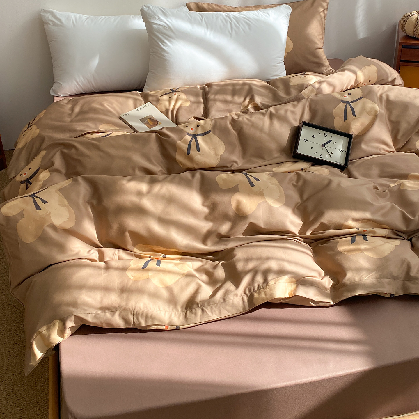 淘宝mybear 原创奶咖小熊全棉被套100%纯棉被芯罩可爱韩系单人150x200