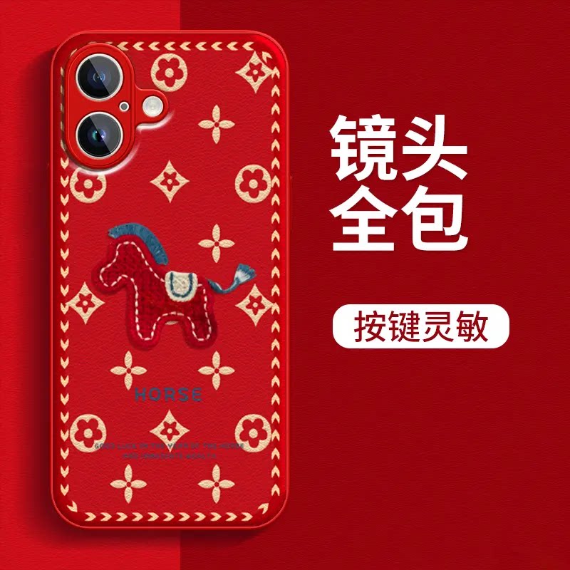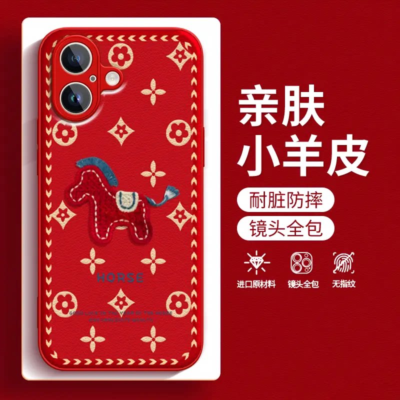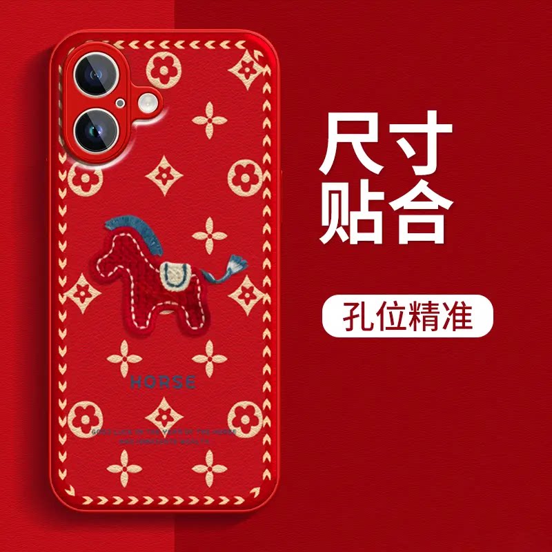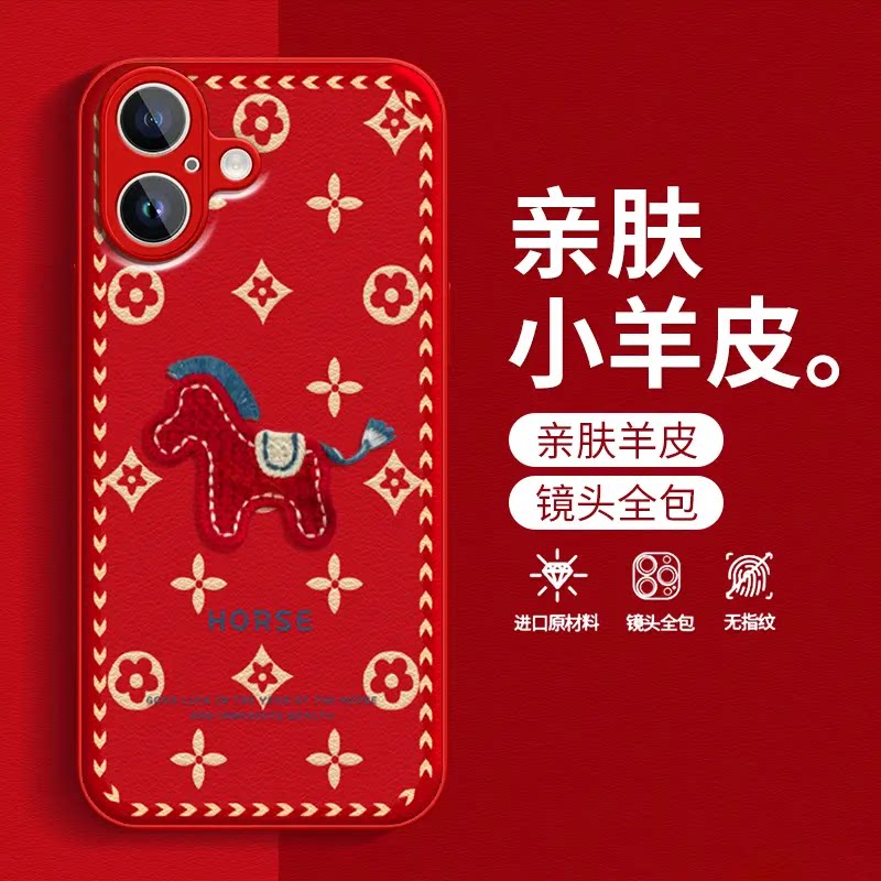天猫红运当头马年金属漆小羊皮适用苹果17promax手机壳16pro新款15本命年14红色13创意个性喜庆全包防摔保护