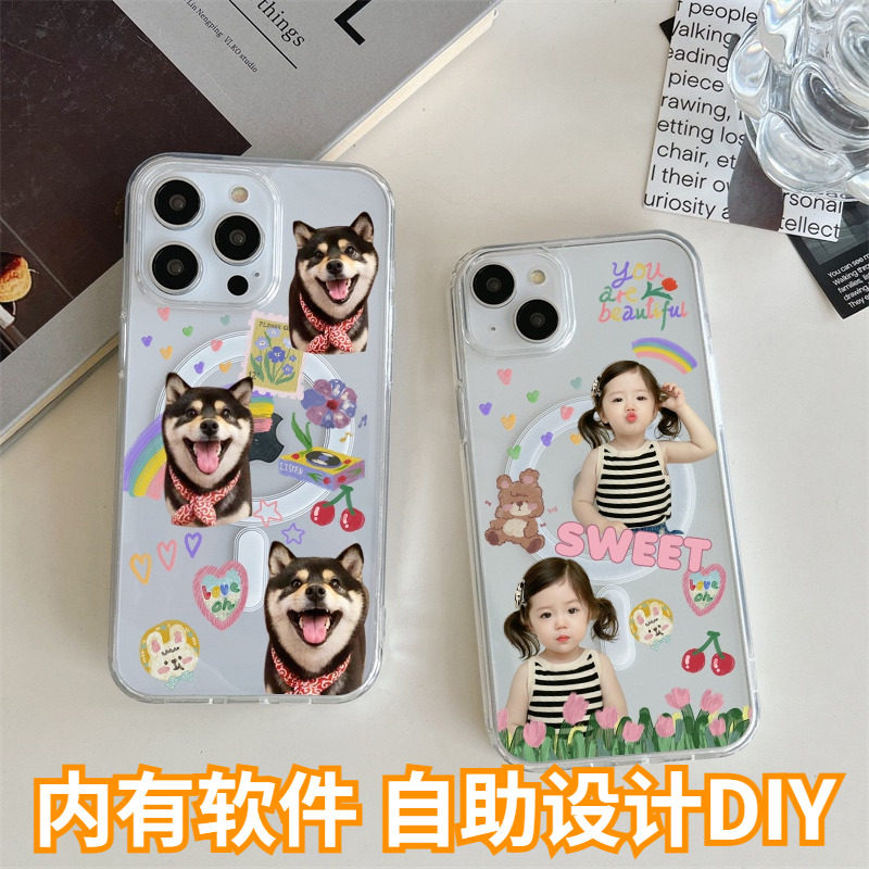 淘宝亚克力磁吸手机壳定制来图diy苹果17适用iphone16promax情侣照片宠物宝宝图案透明硬壳磁吸车载15来图订制14