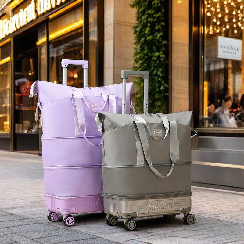 这款可折叠大容量拉杆旅行包,集实用与便携于一体,专为出差、旅行及待产出行设计。采用高强度耐磨面料,结构稳固,承重出色,轻松容纳衣物、母婴用品或办公用品。独特扩容设计,拉开拉链即可增加额外空间,满足临时收纳需求。配备360°静音万向轮,推拉顺滑省力,搭配可调节铝合金拉杆,适应不同身高。手提、拖拉双模式切换,折叠后仅A4大小,方便存放。多隔层分区设计,物品归类井然有序,是旅行、探亲、待产及日常出行的理想伴侣。