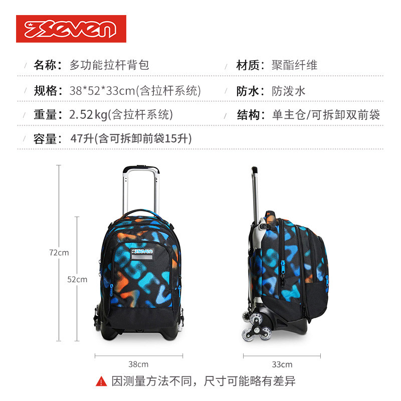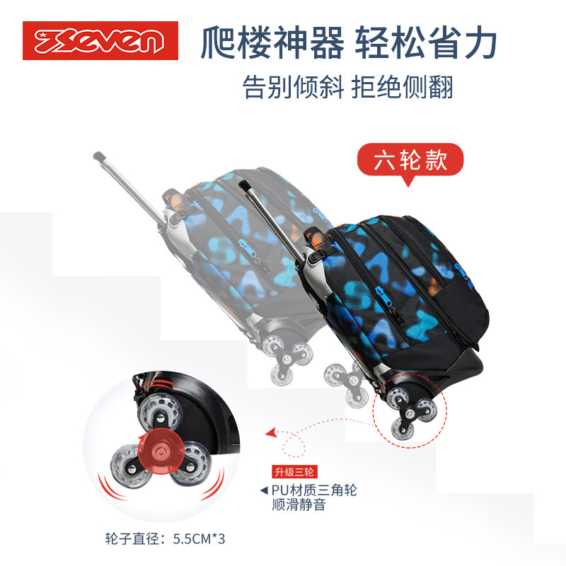 天猫意大利7seven绚烂晴空拉杆书包6轮和2轮可爬楼47升可拆卸双肩背包