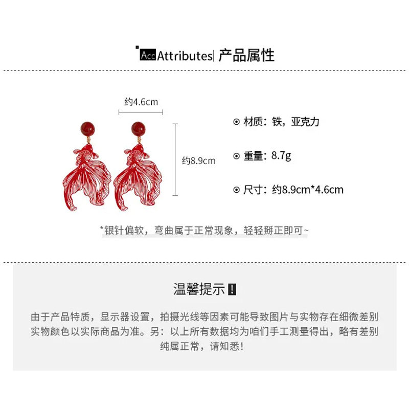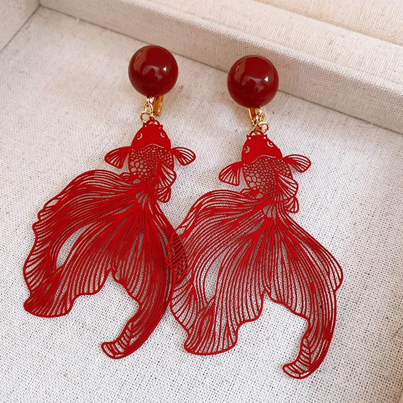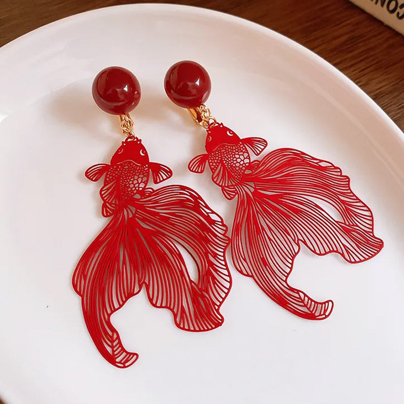 淘宝新中式国风复古镂空剪纸金鱼耳夹无耳洞耳环新年喜庆百搭耳饰女潮