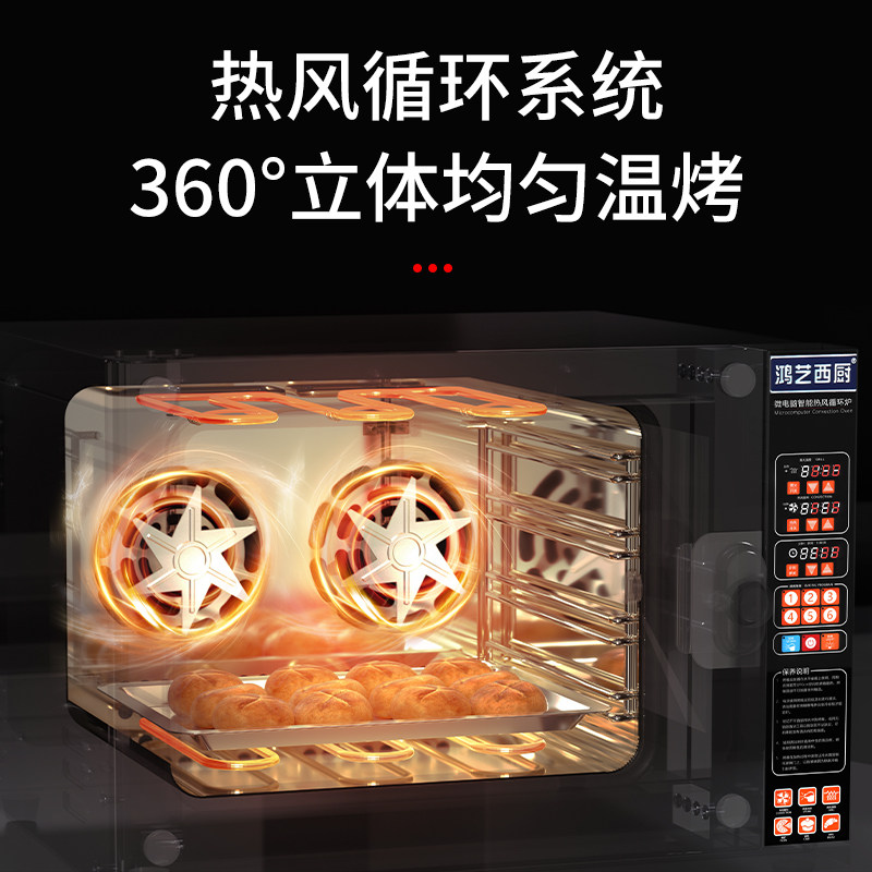 风炉烤箱商用热风循环炉是一款专为烘焙店、餐厅及食品加工场所设计的大容量多功能电烤箱。采用强力热风循环系统,确保炉内温度均匀,使蛋糕、面包、蛋挞、披萨等烘焙品受热一致,色泽美观、口感松软酥脆。多层烤位设计,可同时烘烤多盘产品,显著提升工作效率。配备精准温控与定时功能,操作简便,节能高效。不锈钢机身坚固耐用,易于清洁维护。适用于各类中西式烘焙需求,是商用厨房提升产能与品质的理想选择,兼顾专业性能与实用便捷。