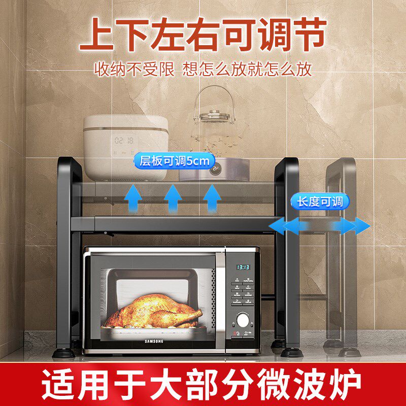 淘宝可伸缩厨房微波炉置物架烤箱台面双层支架多功能家用家电收纳架子