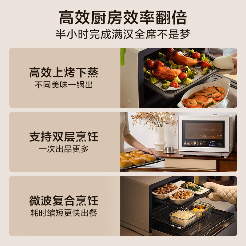 天猫美的寻味pro3.0微蒸烤炸炖一体机家用微波炉32L蒸箱烤箱三合一G32