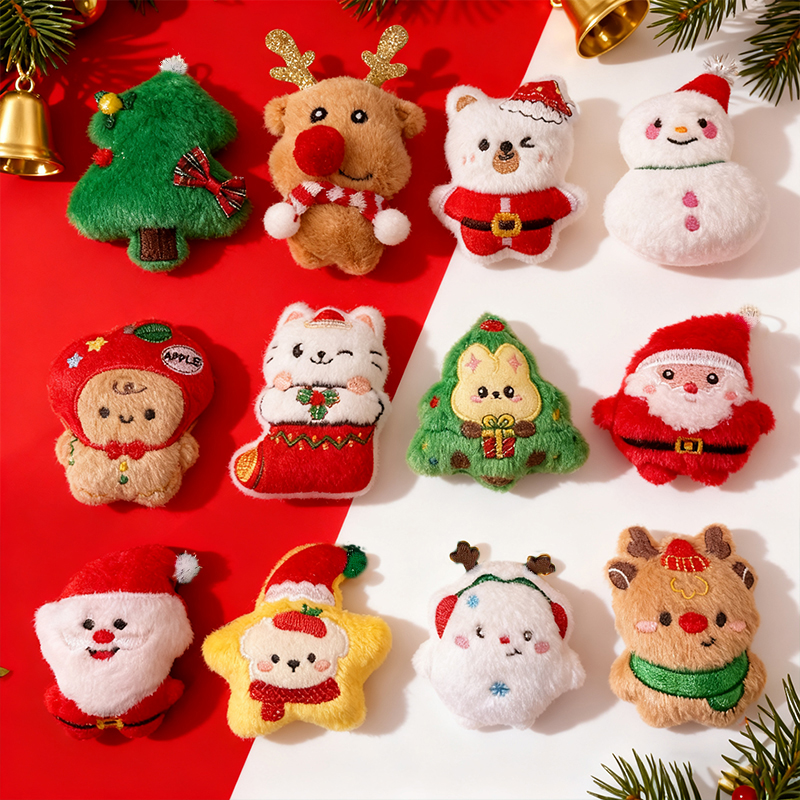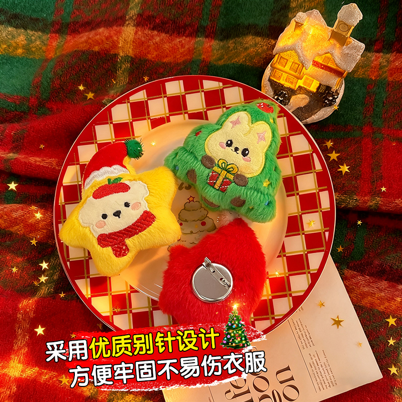 淘宝2025新款圣诞节装饰毛绒可爱圣诞老人胸针衣服围巾别针儿童小礼物
