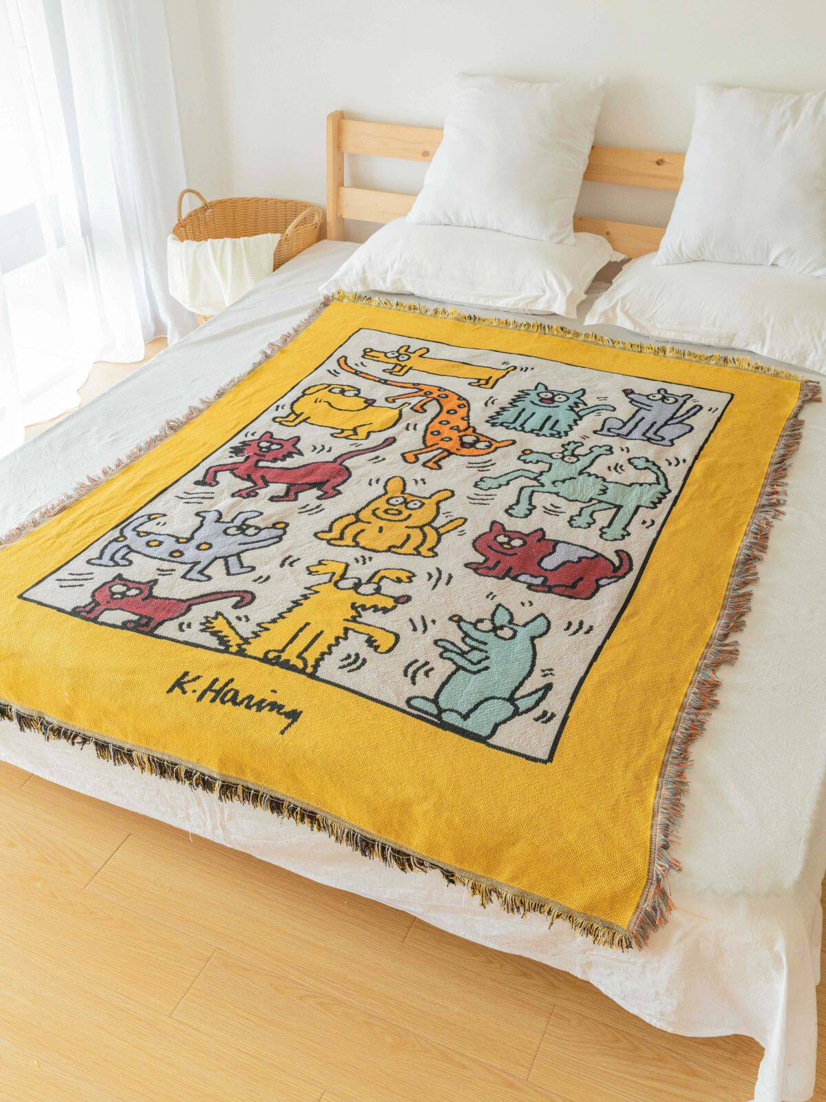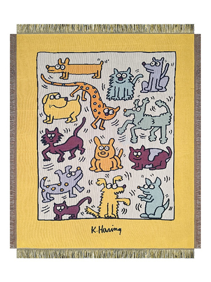 淘宝出口外贸美国涂鸦大师狗狗卡通沙发靠背巾插画挂毯床毯沙发垫毛毯
