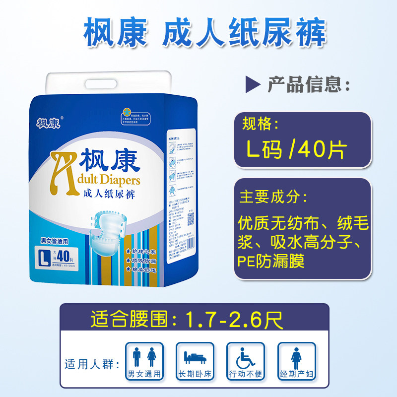 淘宝枫康成人纸尿裤老年防漏尿不湿L码吸水尿片男女通用加宽包臀40片