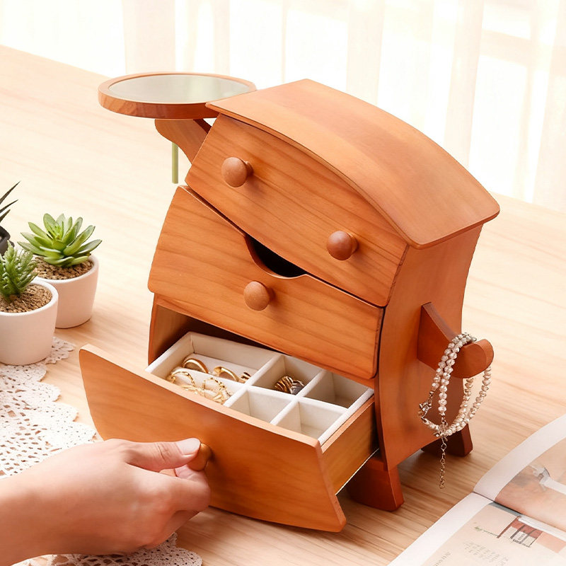 天实木首饰盒中古耳环项链手饰品盒子木质抽屉珠宝盒高级精致大容量