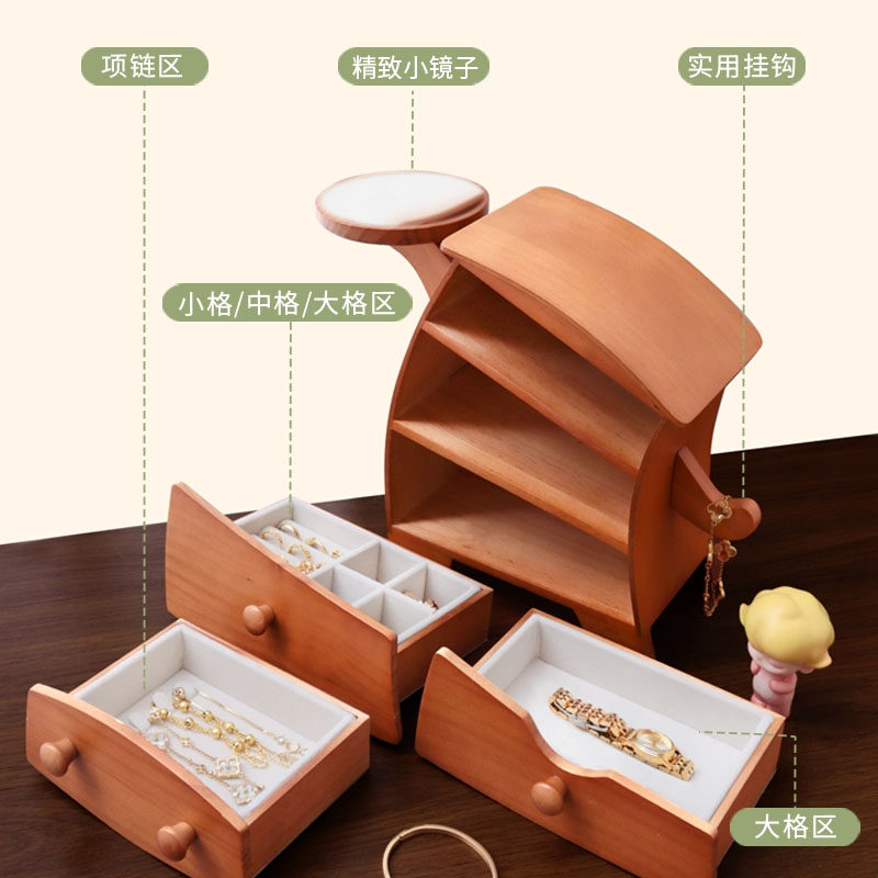 实木首饰盒中古耳环项链手饰品盒子木质抽屉珠宝盒高级精致大容量