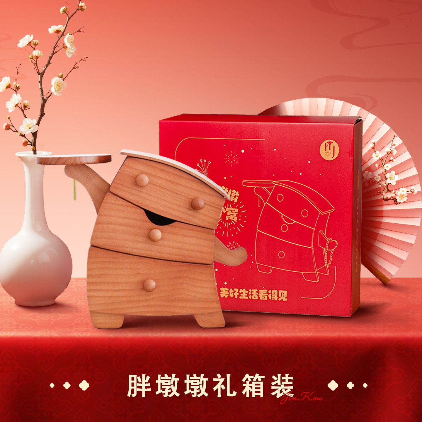 淘宝实木首饰盒胖墩墩可爱创意造型黄金饰品新婚礼物收纳盒桌面手饰盒
