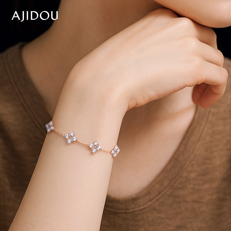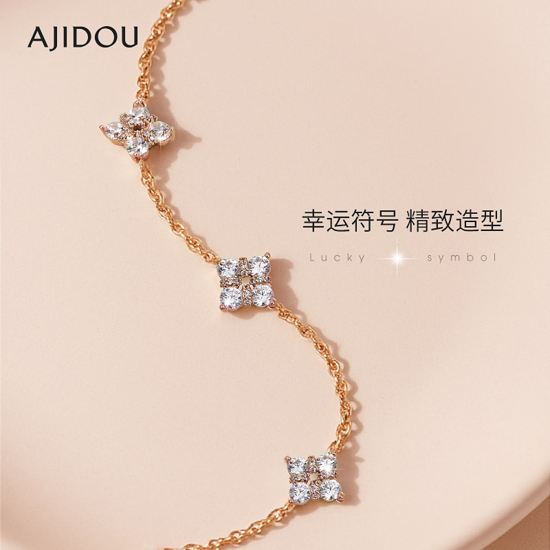 天猫AJIDOU阿吉豆手链女四叶草手串精致小众手饰饰品高级感玫瑰金手链