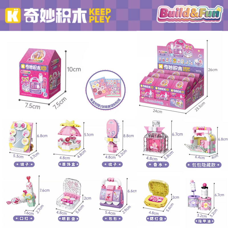 奇妙积木拼拼乐,为女孩打造的创意美妆主题拼装模型玩具,融合口红、香水瓶、首饰盒等精致元素,每一块积木都充满梦幻色彩与细腻设计。通过亲手拼装,孩子不仅能锻炼动手能力与空间思维,还能在“玩美时刻”中激发艺术灵感与审美情趣。成品可作为桌面摆件,既实用又美观,满足收藏与展示的双重乐趣。安全环保材质,细节精致逼真,是送给爱美的她最贴心的礼物。在拼搭中创造属于自己的童话美妆世界,让想象力与创造力自由绽放。