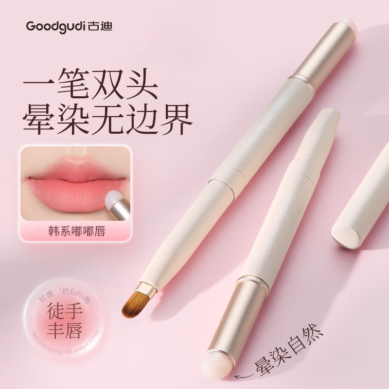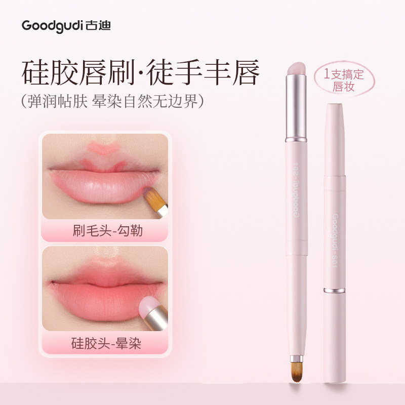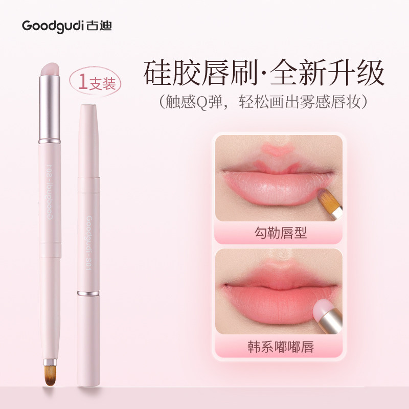 天猫古迪双生硅胶唇刷口红刷双头伸缩便携唇线笔刷口红晕染化妆师专用