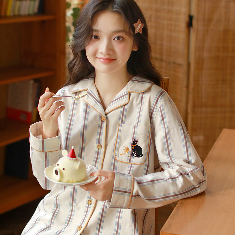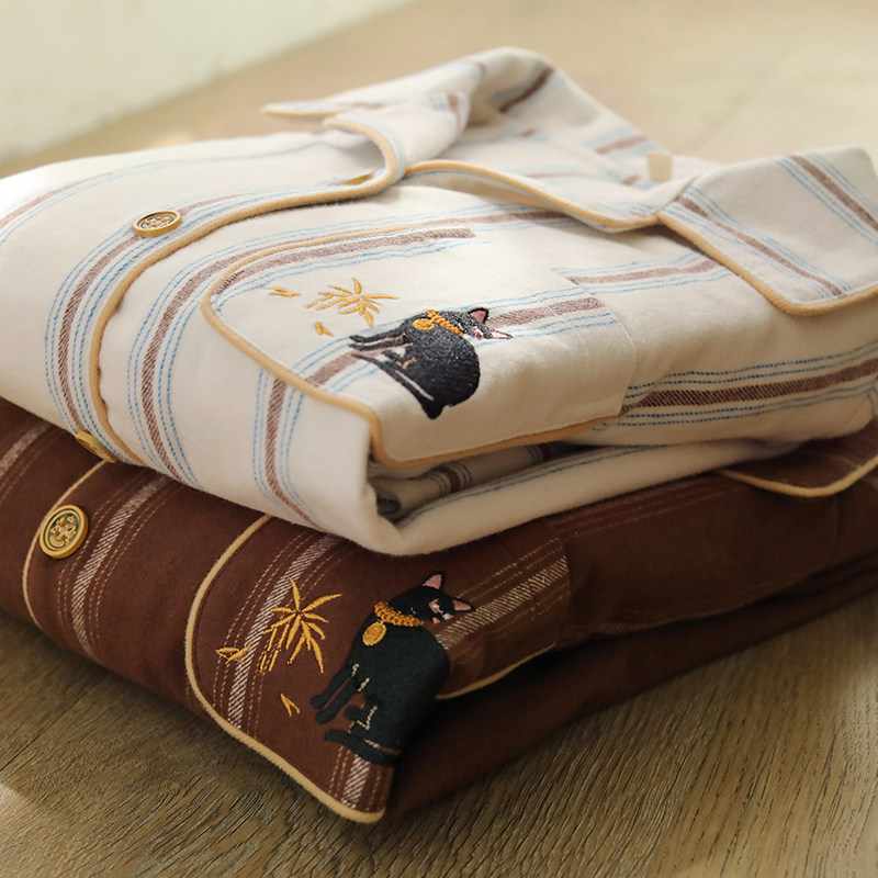 情侣款 纯棉磨毛家居服套装 男女士全棉睡衣睡裤长款起居服春秋款