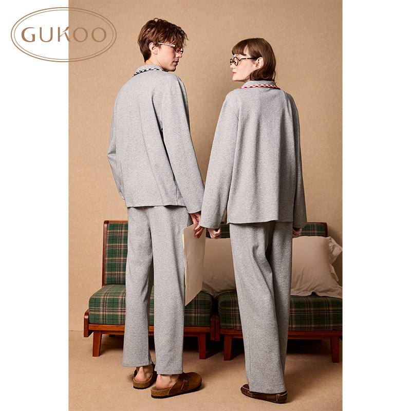 情侣款 纯棉磨毛家居服套装 男女士全棉睡衣睡裤长款起居服春秋款