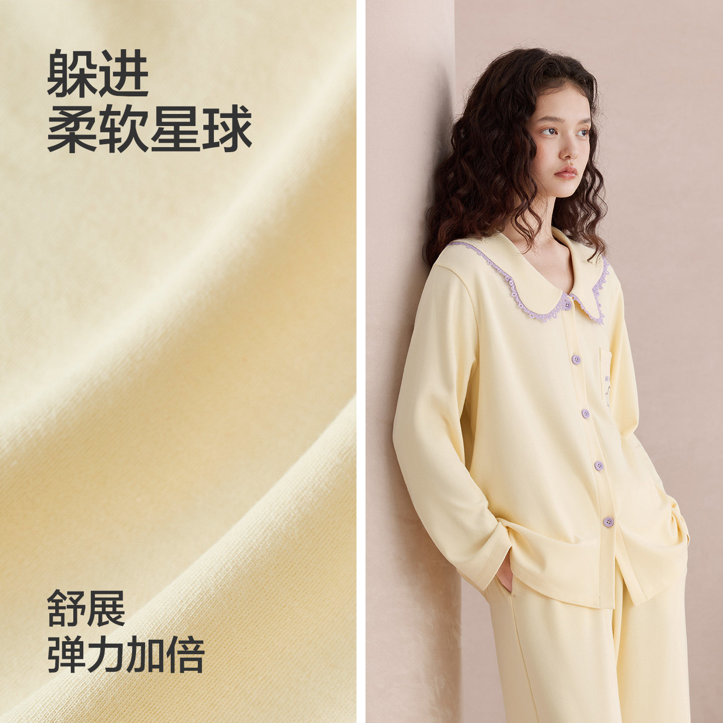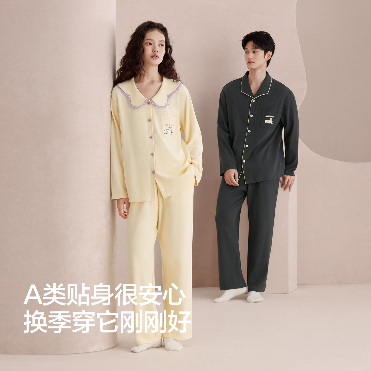 天安之伴【巨柔软】纯棉长袖情侣睡衣女春秋款套装宽松男家居服大码