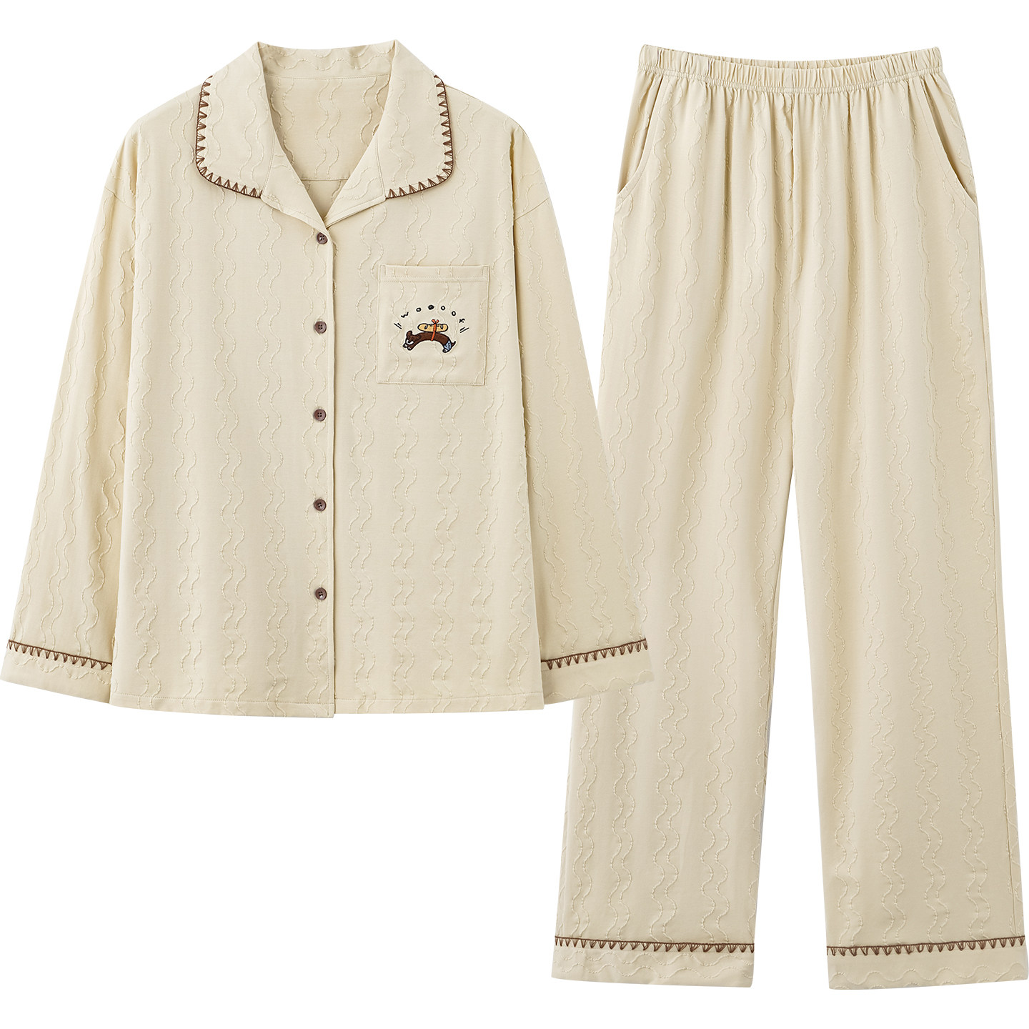 情侣款 纯棉磨毛家居服套装 男女士全棉睡衣睡裤长款起居服春秋款