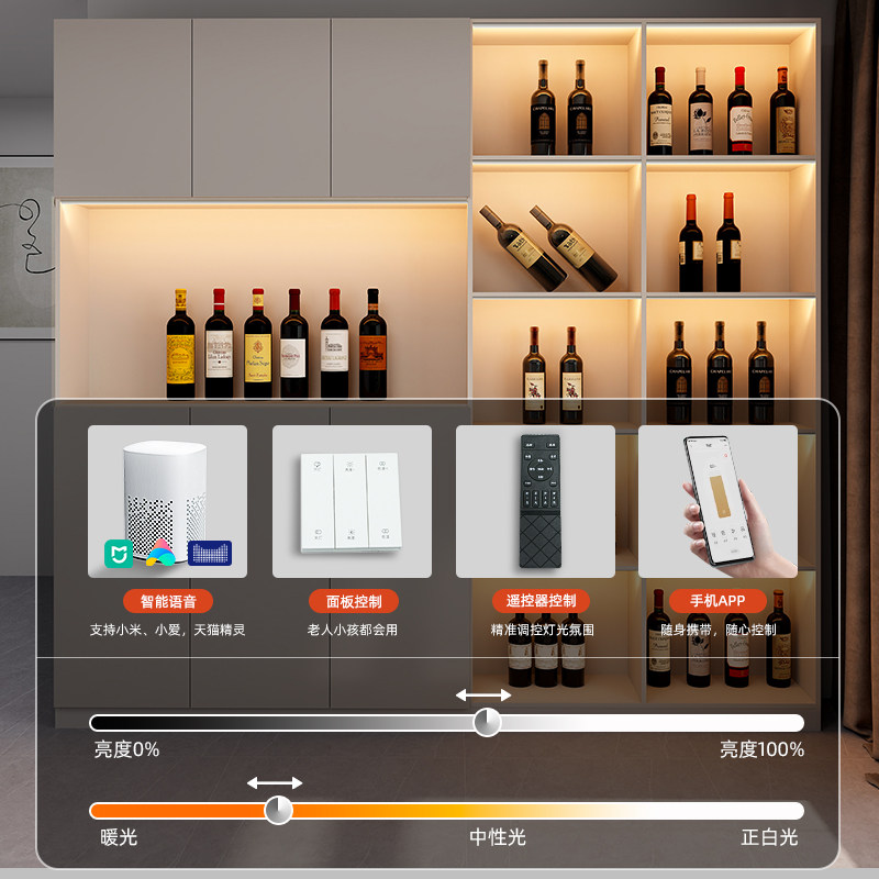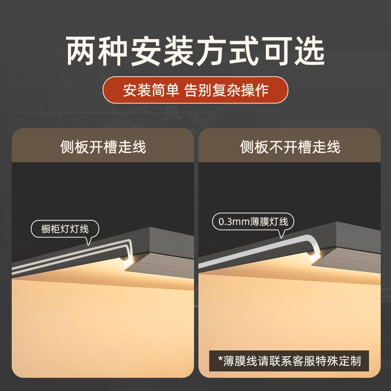 超薄刀锋层板灯免开槽2.0智能全光谱护眼餐边柜电视柜橱柜酒柜灯,采用创新免开槽设计,安装便捷,无需破坏柜体结构。灯体厚度仅6mm,如刀锋般纤薄,完美嵌入层板,营造悬浮光影效果。搭载智能全光谱LED光源,高度还原自然光,无频闪、低蓝光,有效呵护双眼,尤其适合长时间阅读或用餐环境。支持智能调光调色,可通过遥控或APP随心调节亮度和色温,适配餐边柜、电视柜、橱柜、酒柜等多种家居场景。高显色指数(Ra≥95),让物品色彩更真实,提升空间质感。节能环保,寿命长达50000小时,是现代家居智能照明的理想之选。