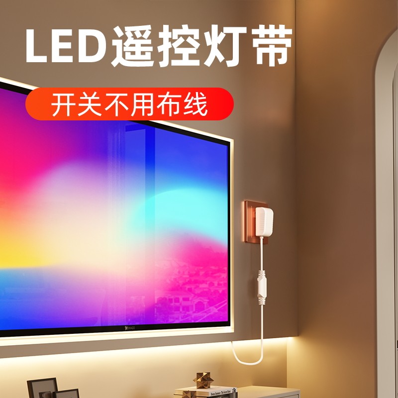 天猫床头灯带自粘免布线无线遥控插电插座带开关橱柜电视柜床底氛围灯