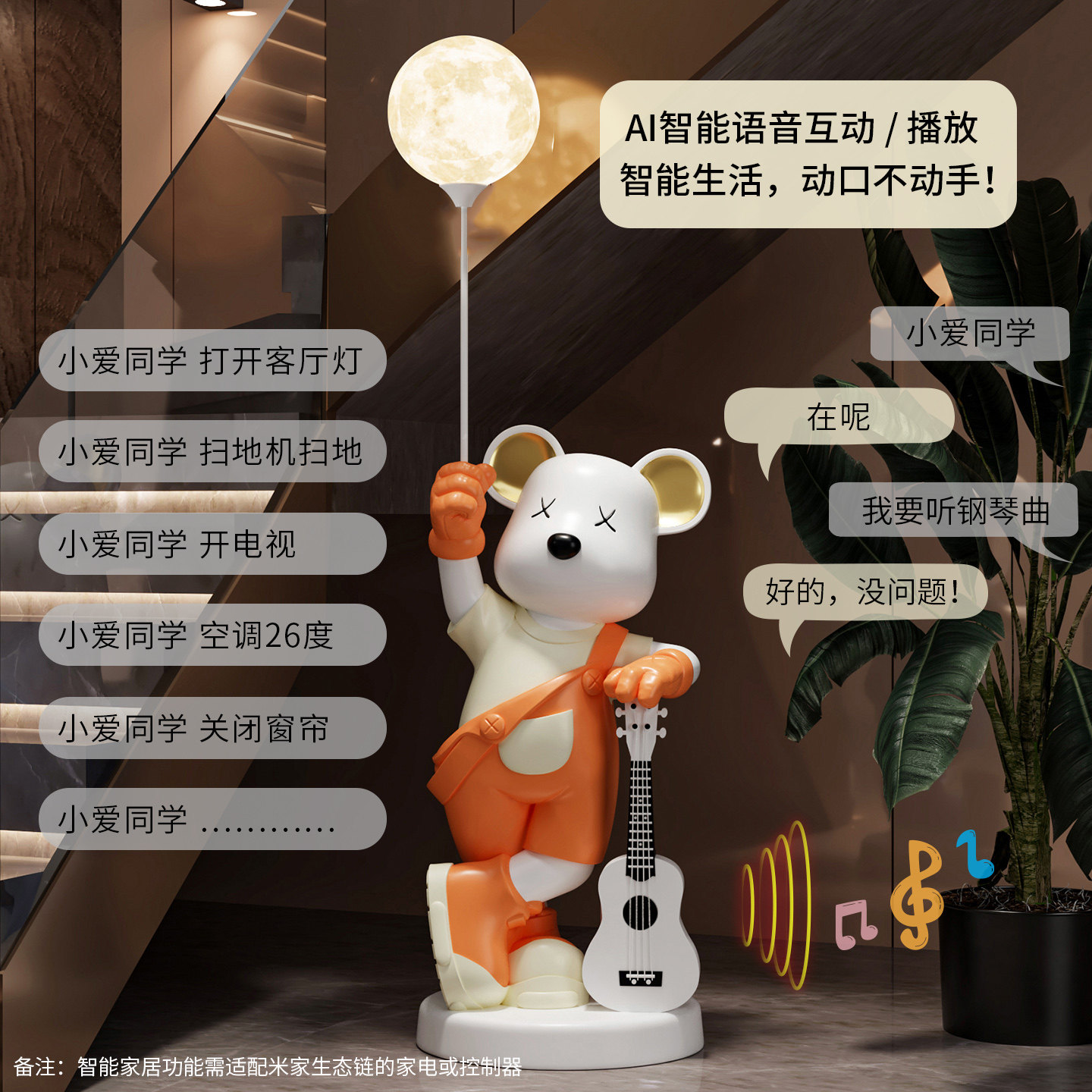 这款暴力熊客厅大型落地摆件,将潮酷设计与实用功能完美结合。高仿真树脂材质打造,质感细腻,造型霸气又不失趣味,是客厅、电视柜旁的吸睛焦点。内置小爱同学智能音箱,支持语音控制家电、播放音乐、查询天气等,科技感十足。无论是自用还是作为乔迁新居、搬家礼物,都极具创意与心意。摆放在家中,既能提升空间格调,又能享受智能便捷生活,是潮流家居的理想之选。送礼自用两相宜,让新家 instantly 升级格调与温度。