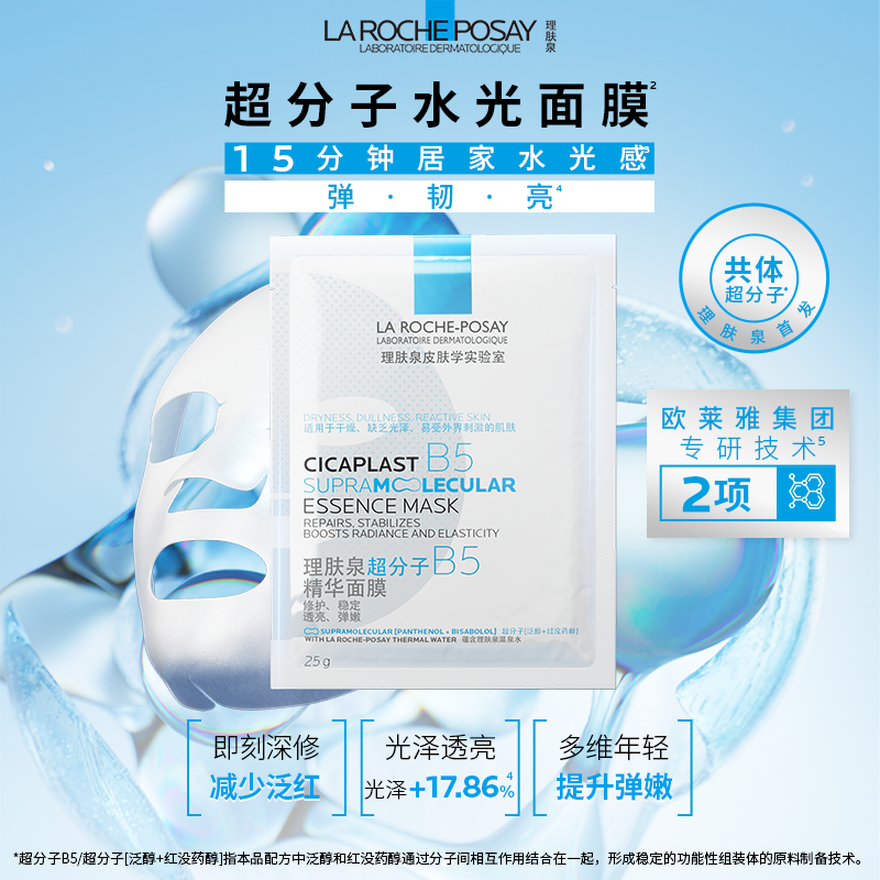 【李佳琦超级年货尾款日】理肤泉B5精华水光面膜,专为新年焕肤打造!蕴含高浓度维生素B5与透明质酸,深层修护肌肤屏障,强效补水锁水,令肌肤由内而外透现水润光泽。面膜采用轻盈亲肤膜布,贴合度高,精华丰润不黏腻,快速渗透,舒缓干燥、泛红等肌肤小情绪。持续使用,可改善暗沉、细纹,重现健康透亮肌。新年倒计时,趁尾款日超值优惠,囤货正当时!李佳琦直播间专享福利,买即赠好礼,限量抢购,助你开启水润焕亮新年肌遇。修护+焕亮双效合一,理肤泉B5精华水光面膜,新年美肌首选!