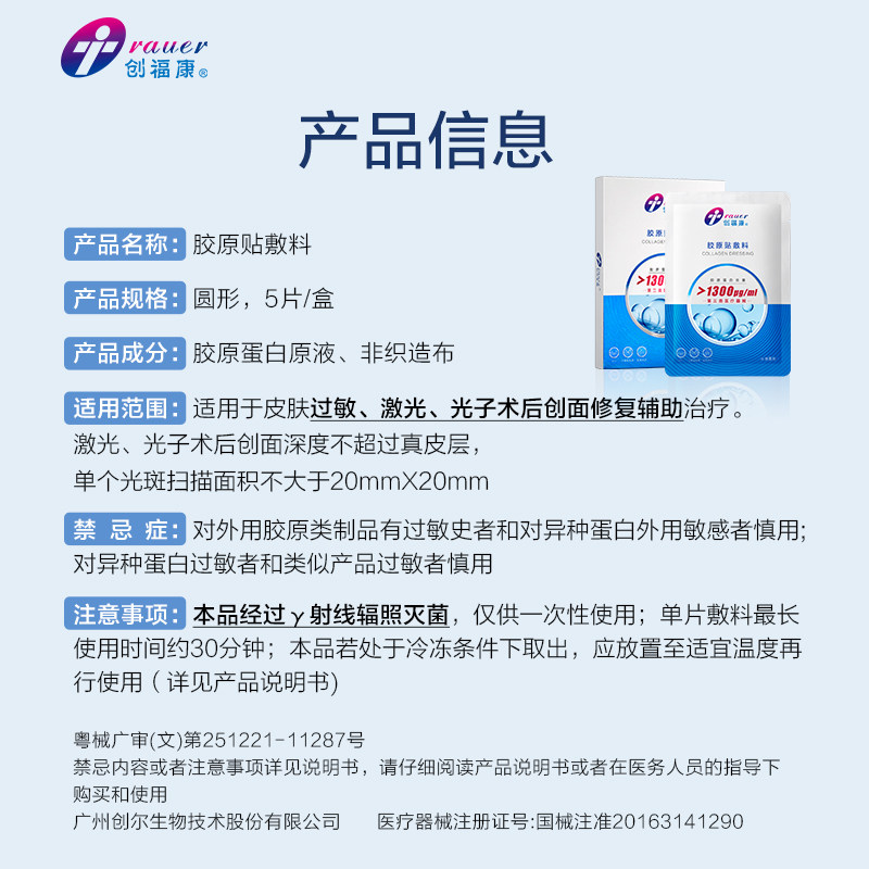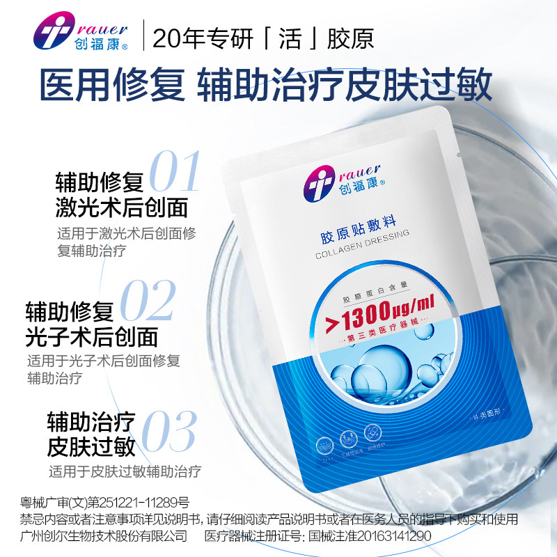 天猫创福康三类胶原蛋白医用敷料非面膜激光术后修复皮肤过敏胶原正品