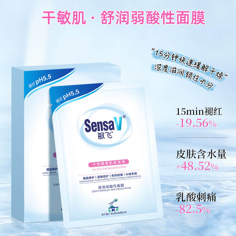 SensaV敏飞舒缓补水面膜,专为敏感肌、油痘肌及熬夜人群设计。蕴含多重植物舒缓成分与透明质酸,深层补水的同时有效控油祛痘,缓解肌肤泛红与不适。温和无刺激的配方,通过敏感肌测试,适合日常修护与熬夜后急救使用。膜布轻薄透气,贴合肌肤,精华易吸收,使用后肌肤水润透亮、清爽不黏腻。官方旗舰店品质保障,正品承诺,让您安心享受专业级护肤体验。无论是换季敏感、油脂分泌旺盛,还是熬夜导致的暗沉粗糙,SensaV敏飞面膜都能提供贴心呵护,重塑健康水润肌。