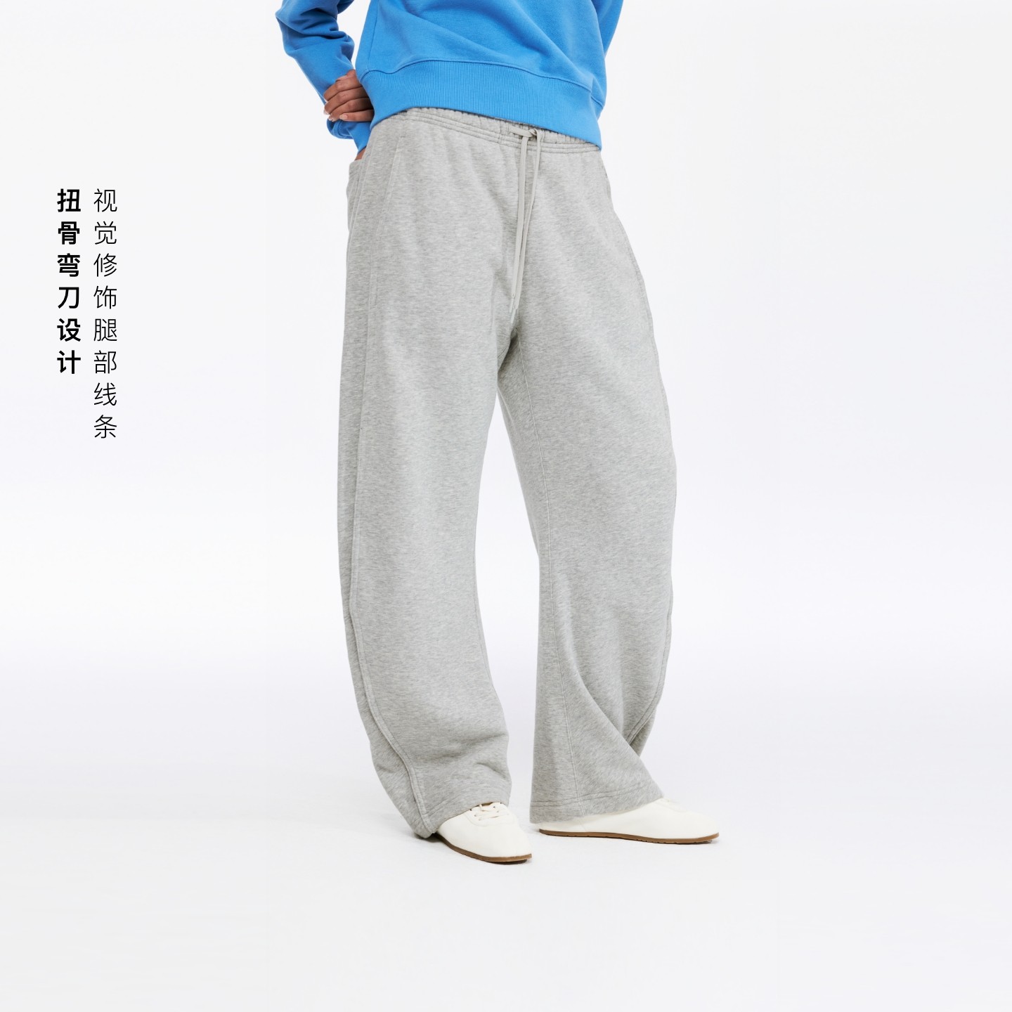 淘宝oneup美式宽松黑色休闲裤子女秋冬运动裤长裤灰色弯刀裤加绒卫裤