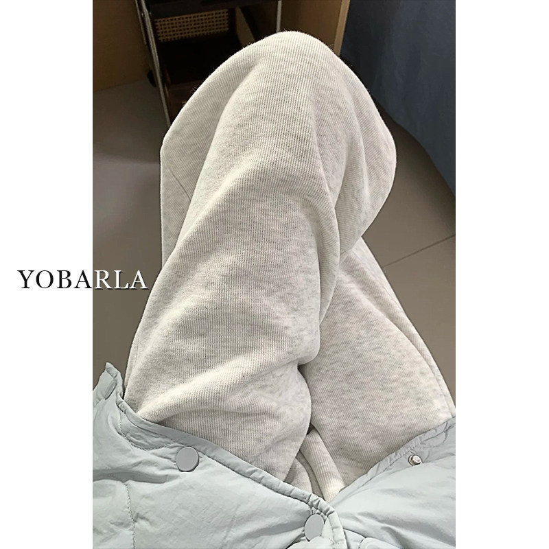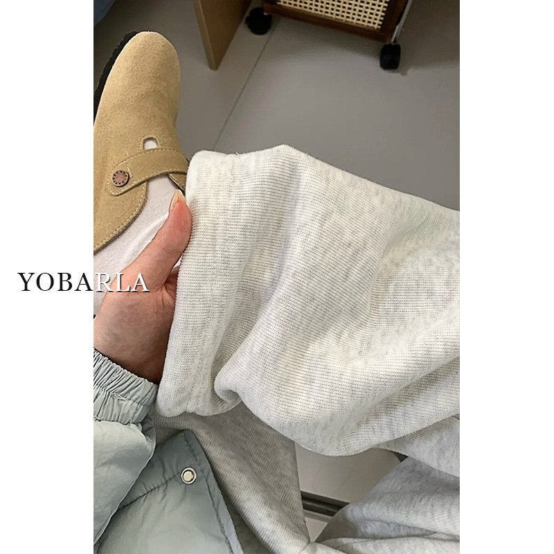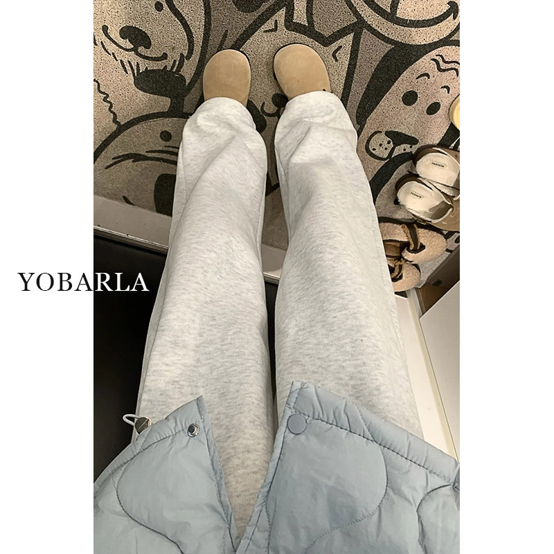 淘宝雪花灰直筒休闲裤女大码冬季加绒胖mm宽松显瘦松弛感运动阔腿卫裤