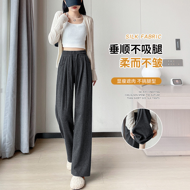 淘宝春夏高腰显瘦糯米窄款阔腿裤女宽松休闲遮肉小个子百搭软糯直筒裤