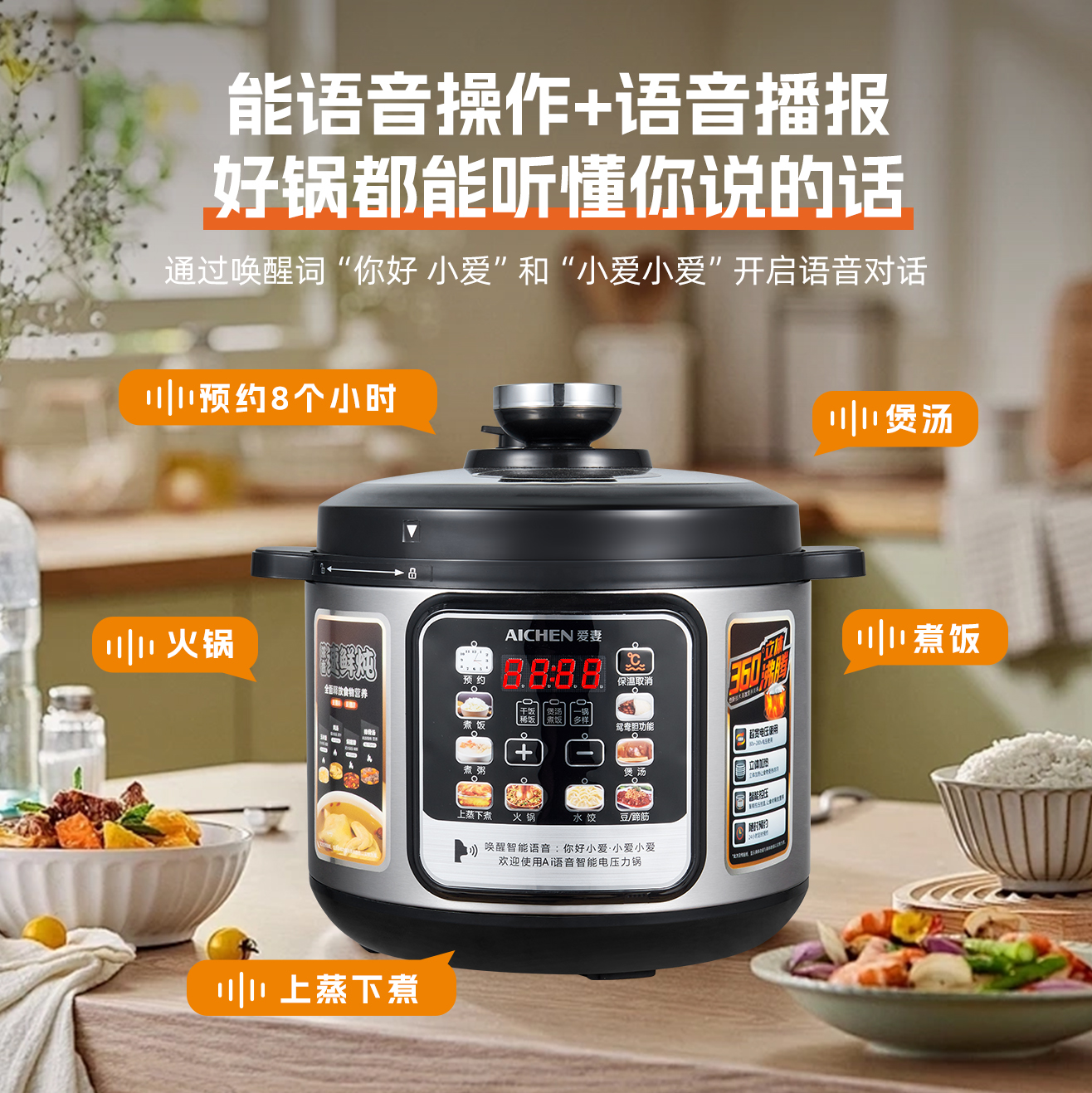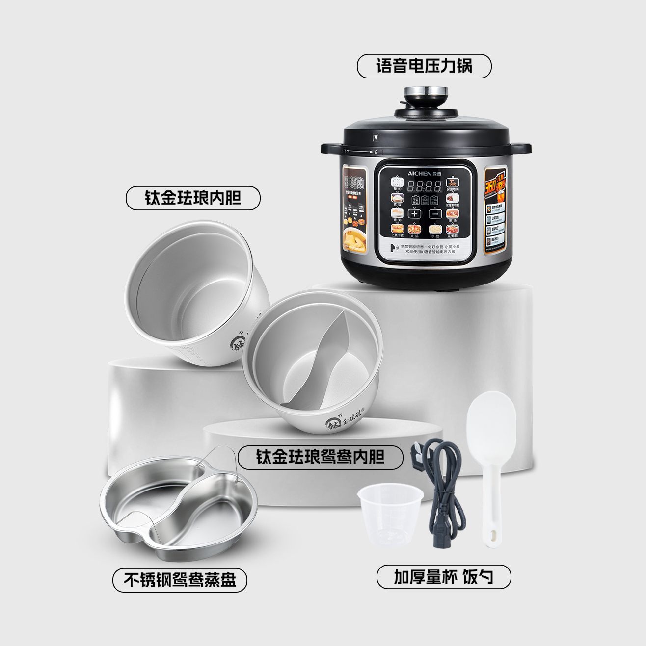 AICHEN/爱妻C款6L语音钛金珐琅鸳鸯锅多功能一锅四出电压力锅,是一款高品质、多功能的厨房电器。该产品采用先进的语音控制功能,操作简便。其钛金珐琅材质保证了锅的耐用性和健康性,同时鸳鸯锅设计让您可以同时烹饪不同口味的食品。该电压力锅具有多功能,不仅可以煮饭、炖汤,还可以蒸、炒等多种烹饪方式,一锅四出,大大提高烹饪效率。总之,这款电压力锅是您家庭厨房的理想选择,让您轻松做出美味佳肴。