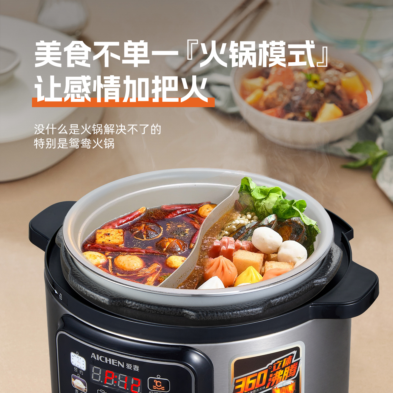 淘宝AICHEN/爱妻 C款6L语音钛金珐琅鸳鸯锅多功能一锅四出电压力锅