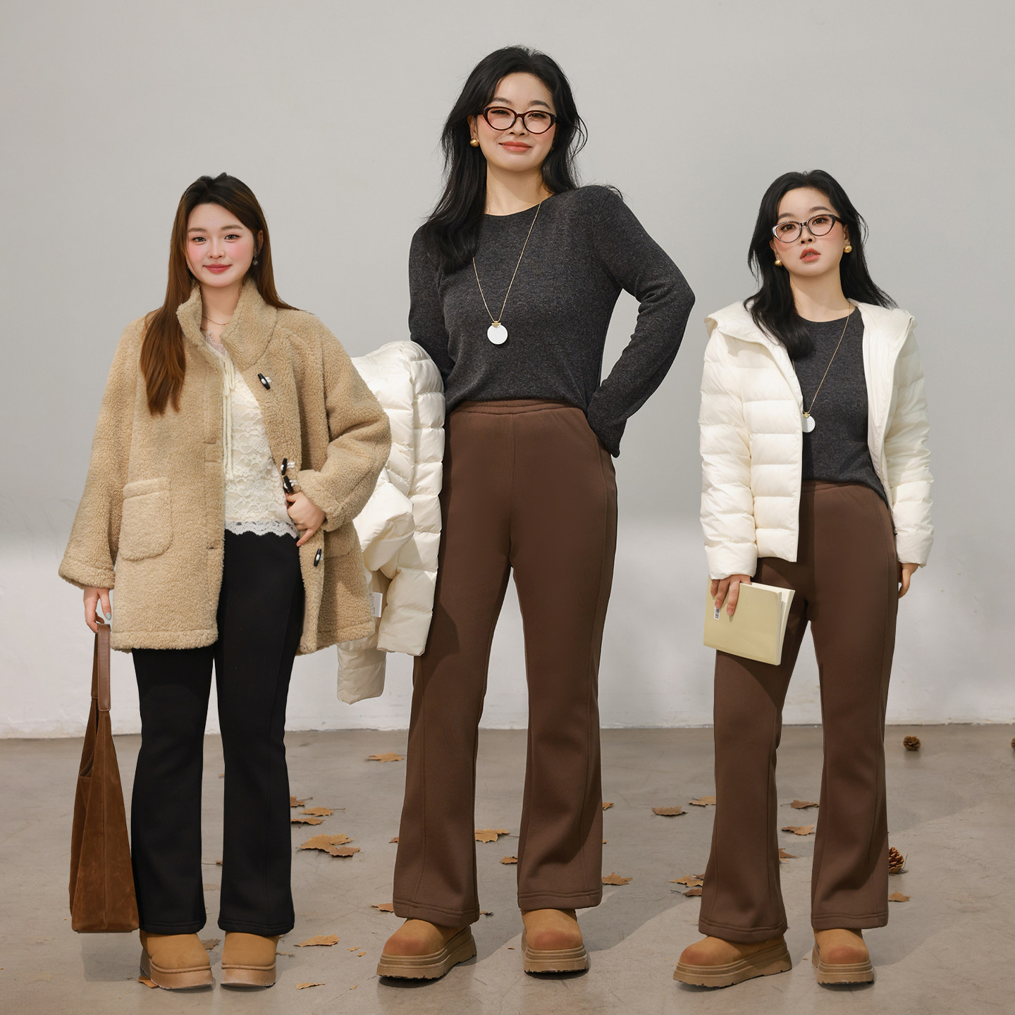 胖mm冬季简约直筒休闲裤木子理想大码女装松紧腰百搭磨毛厚长裤子